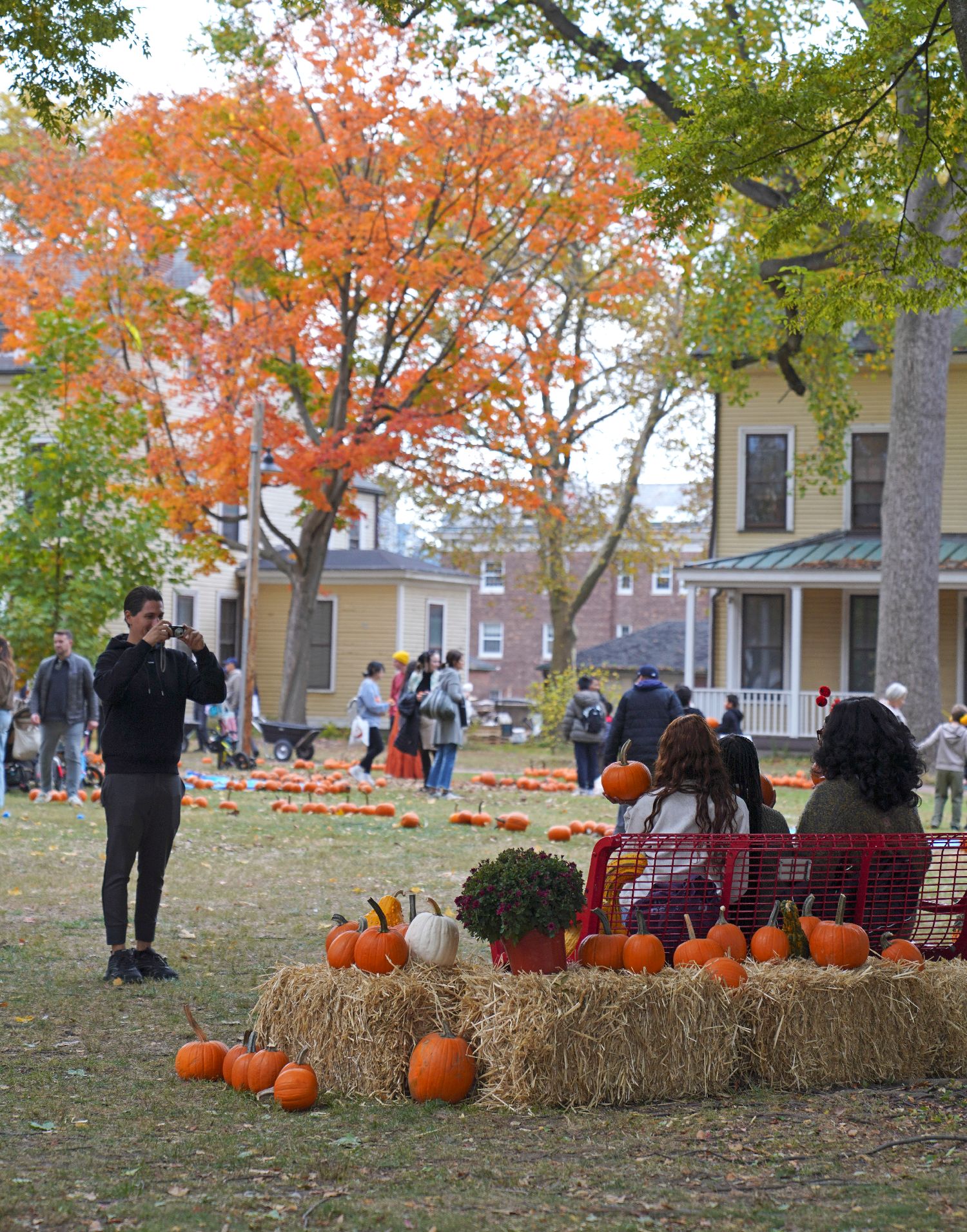 10月25日,在美国纽约总督岛,人们在秋日节上拍照留影。