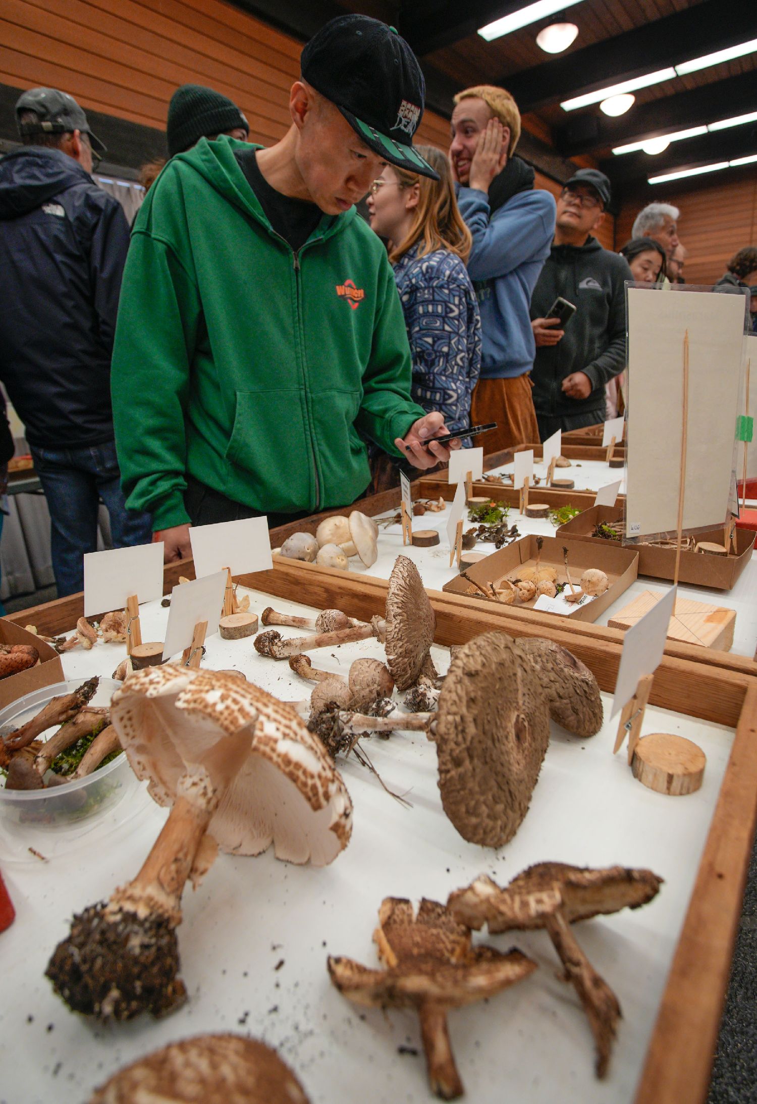 10月26日,人们在加拿大温哥华菌菇展上鉴定采摘的菌菇。(图片来源:本文图片均据新华社)