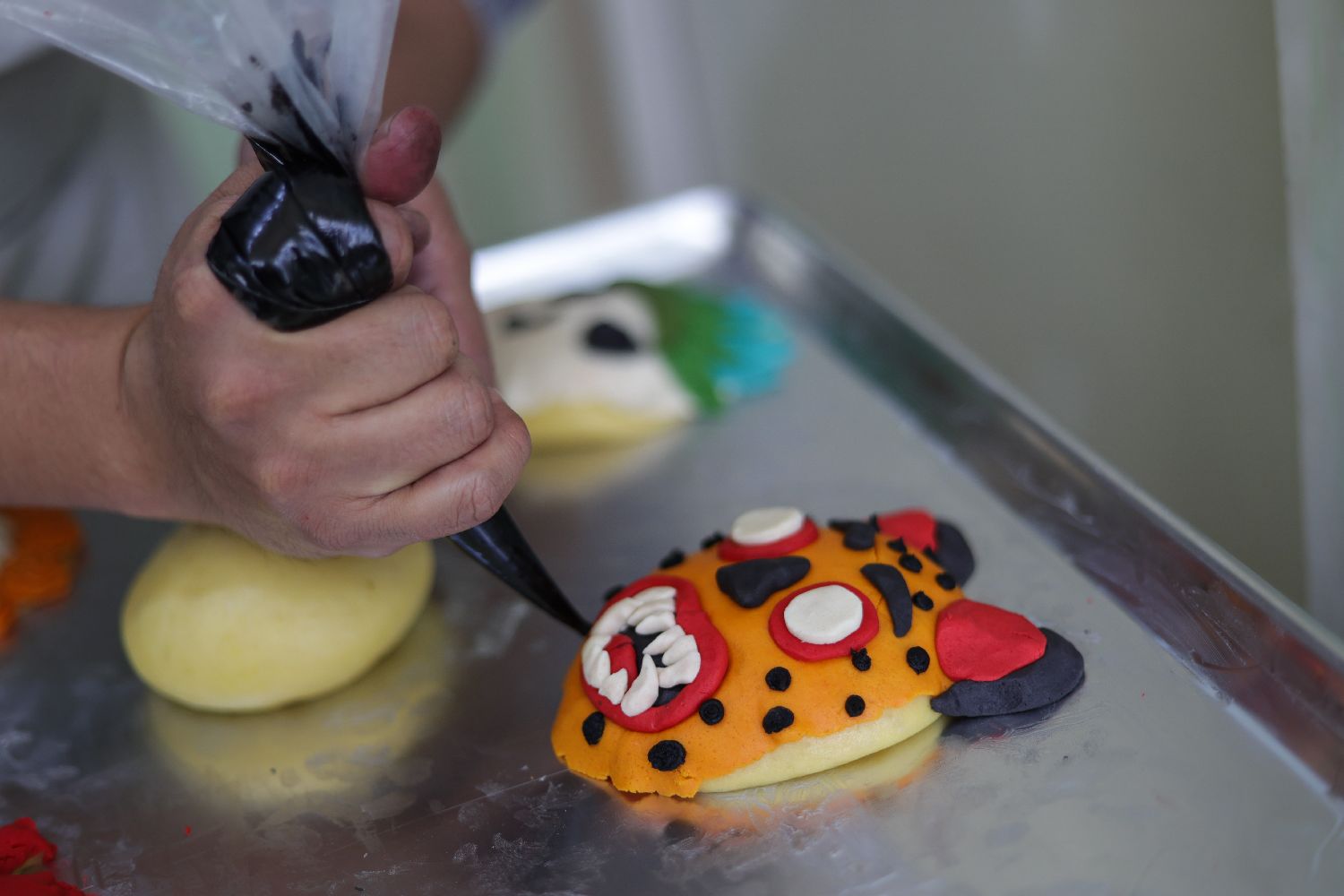 10月27日,在墨西哥首都墨西哥城的一家面包房,面包师制作“亡灵面包”。(图片来源:本文图片均据新华社)