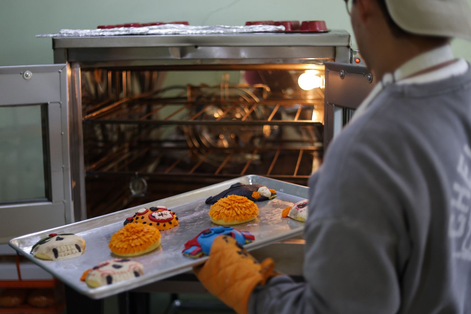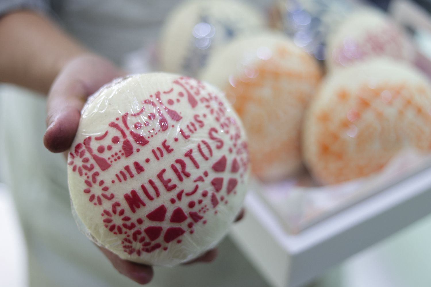 10月27日,在墨西哥首都墨西哥城的一家面包房,面包师展示“亡灵面包”。