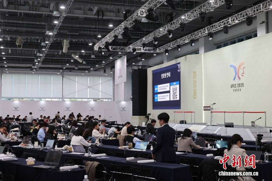 10月28日,在韩国庆州的APEC国际媒体中心,媒体记者在此工作。(图片来源:本文图片均据中新网)