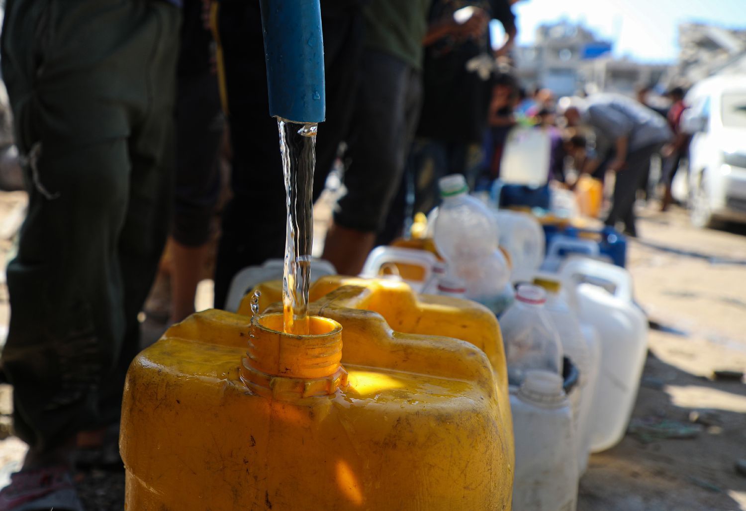 由于供水设施在以军轰炸中遭严重破坏,加沙地带沙提难民营的居民每天要花费数小时才能获取到少量生活用水。