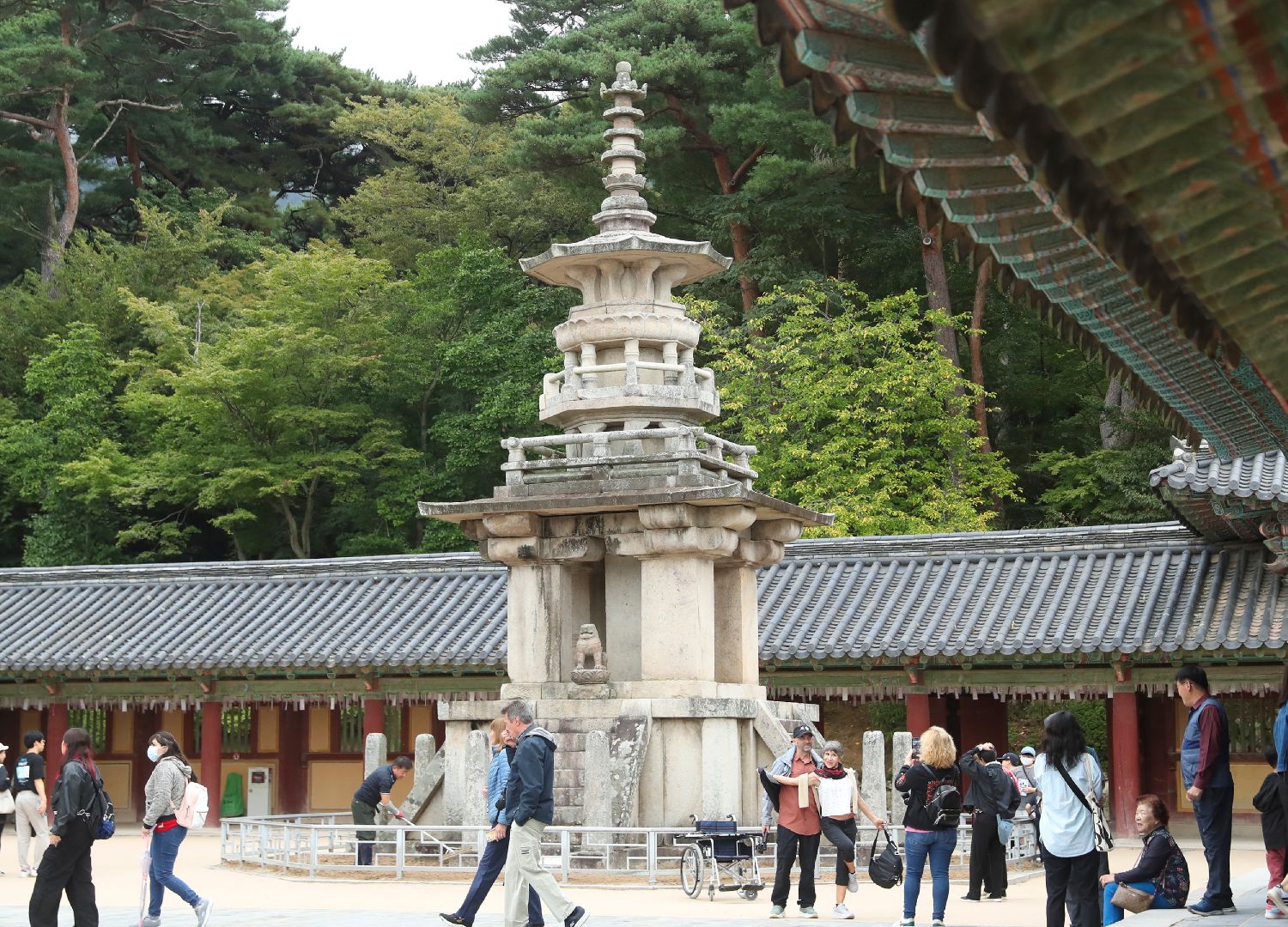 庆州位于韩国东南部,是一座千年古城。庆州拥有佛国寺、玉山书院等世界文化遗产,是韩国拥有世界文化遗产最多的城市,被誉为“露天的历史博物馆”。图为游客在韩国庆州的佛国寺参观。(图片来源:本文图片均自新华社)