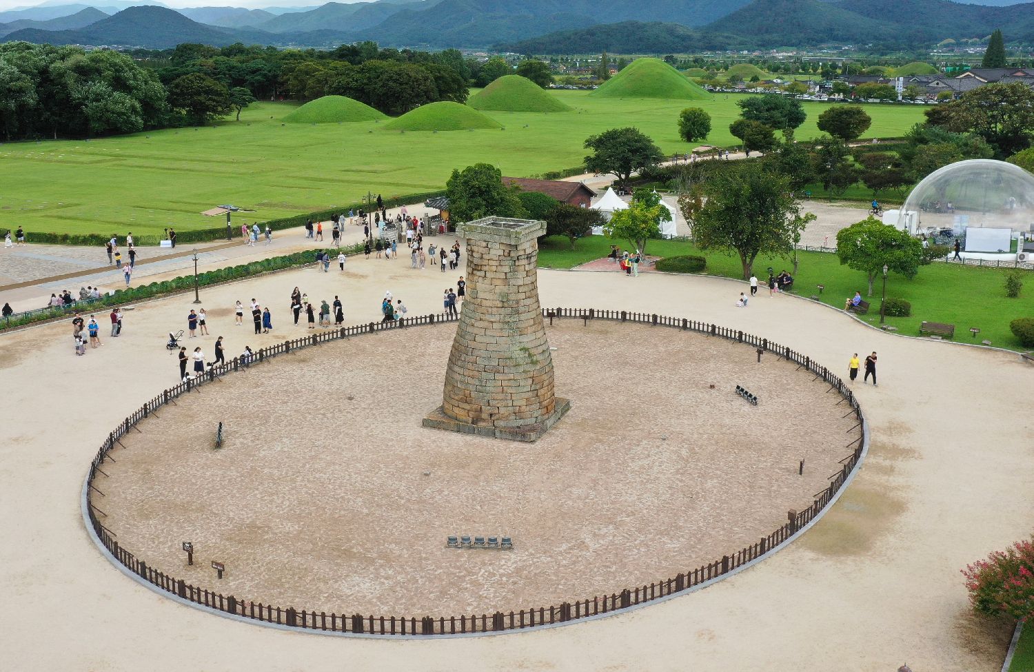 在韩国庆州拍摄的地标性古迹瞻星台。