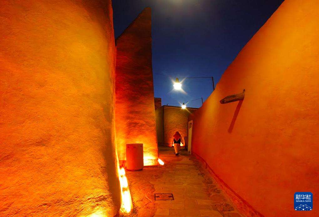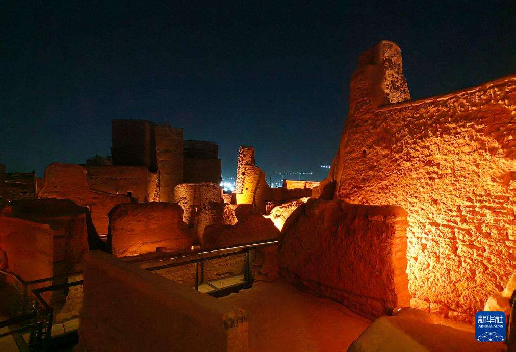 图为10月27日在沙特首都利雅得市区拍摄的迪里耶夜景。(图片来源:本文图片均据新华社)