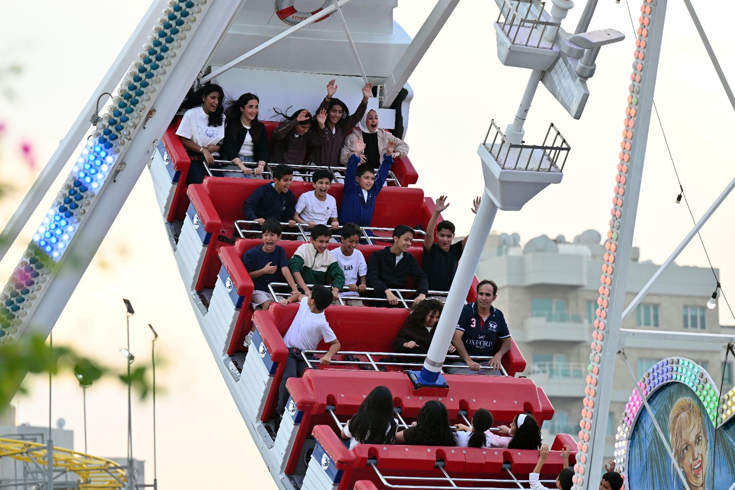 11月6日,人们在“科威特冬日仙境”游乐园内体验游乐项目。(图片来源:本文图片均来自新华社)