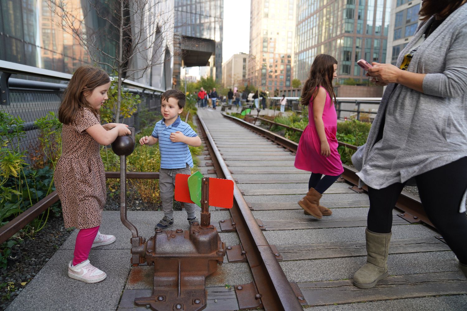 11月8日,在美国纽约,儿童在保护下来的旧铁路上游玩。