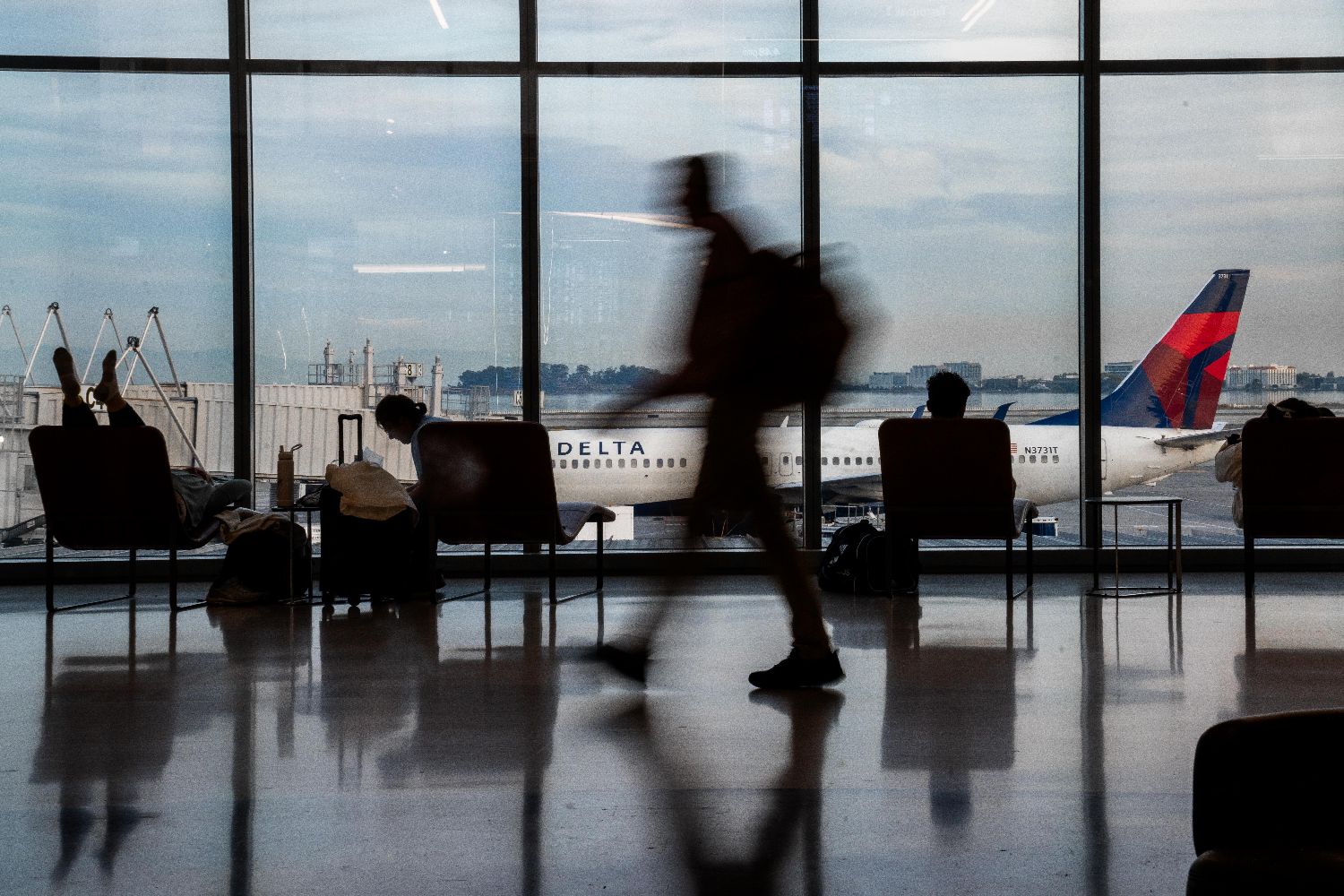 11月10日,在美国加州旧金山国际机场,乘客在候机。