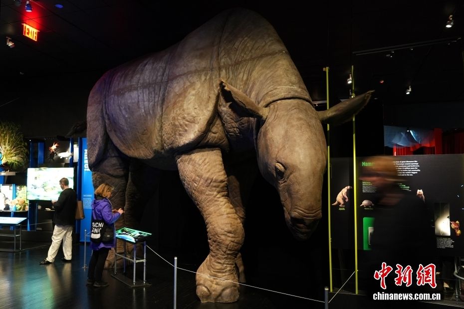 图为展览展示远古哺乳动物巨犀模型。(图片来源:本文图片均据中新网)
