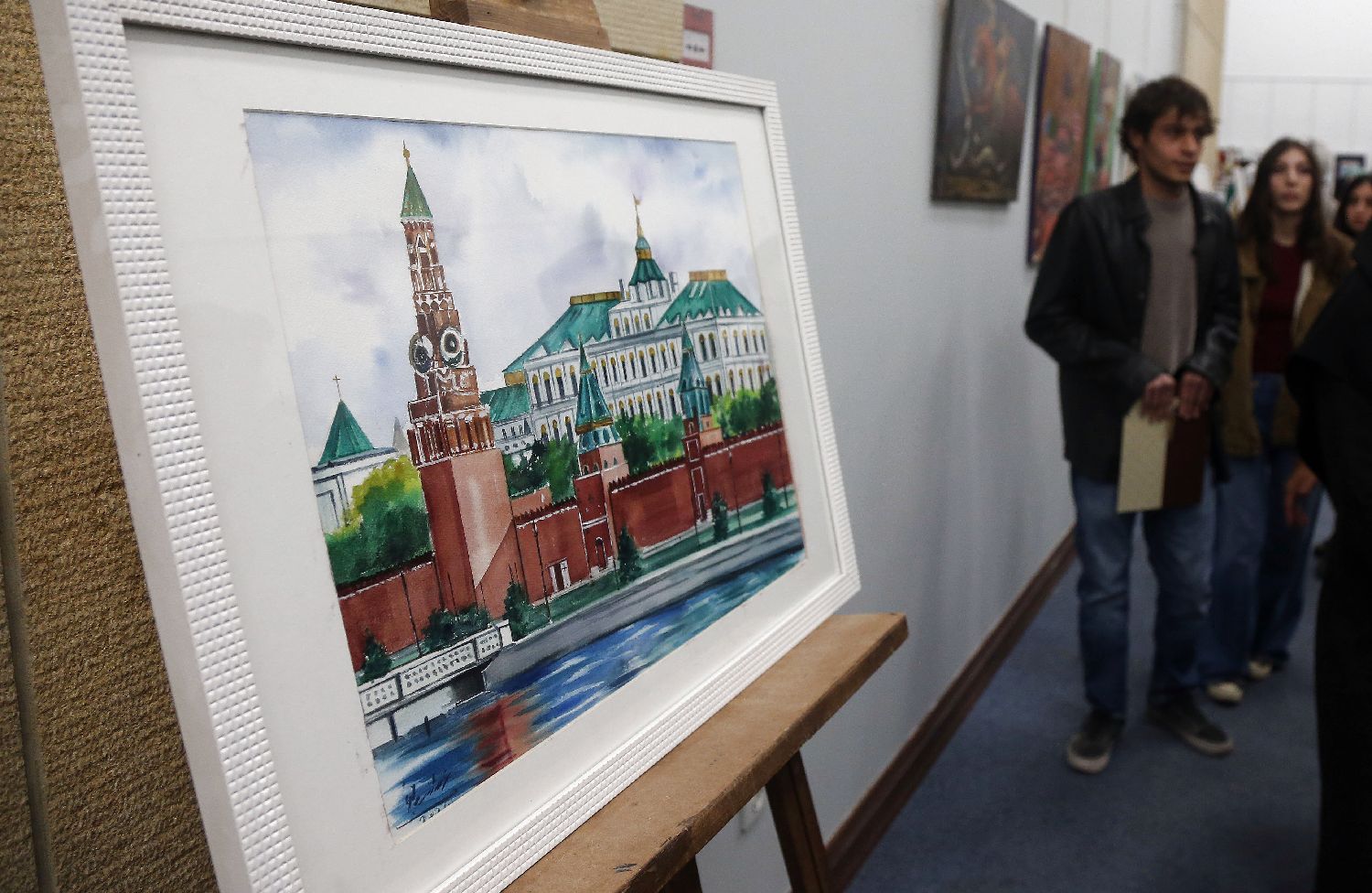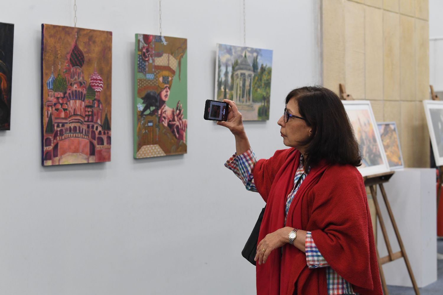 伊朗-俄罗斯艺术展12日在伊朗首都德黑兰举行,共展出200幅来自两国艺术家的作品。