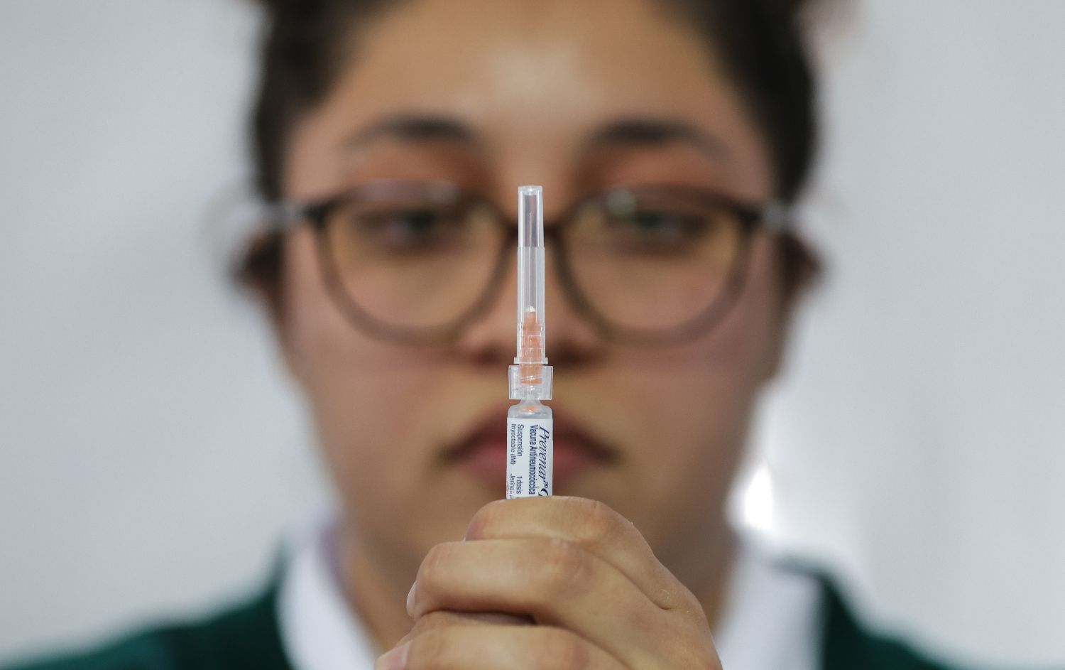 11月12日,在墨西哥首都墨西哥城一处疫苗接种中心,医务人员准备为民众接种疫苗。