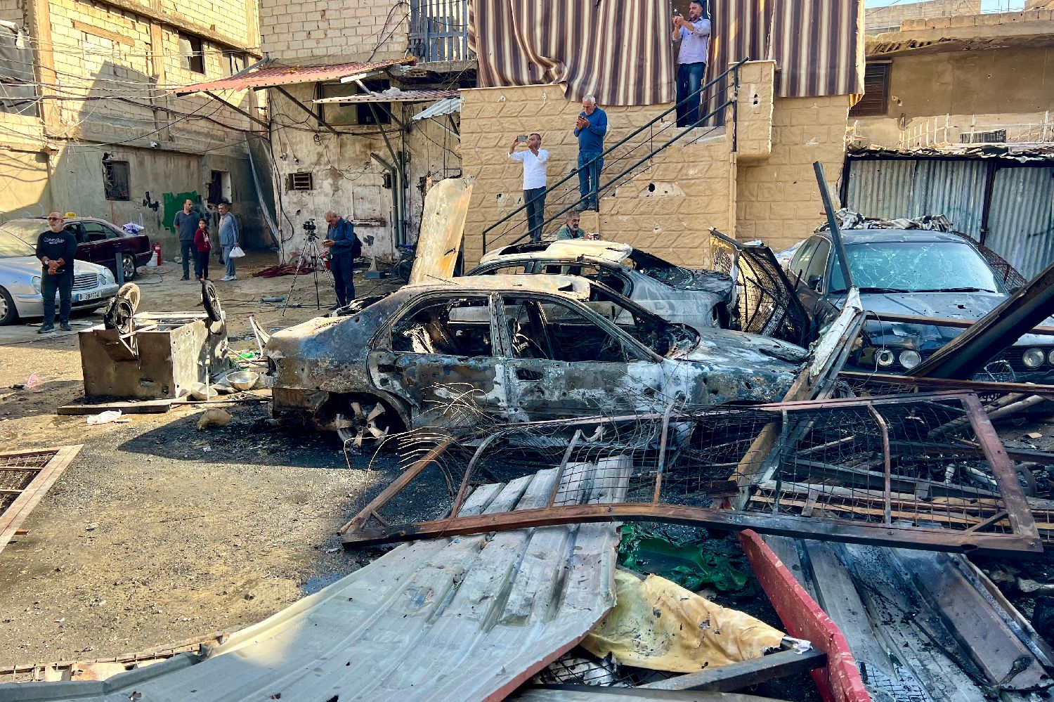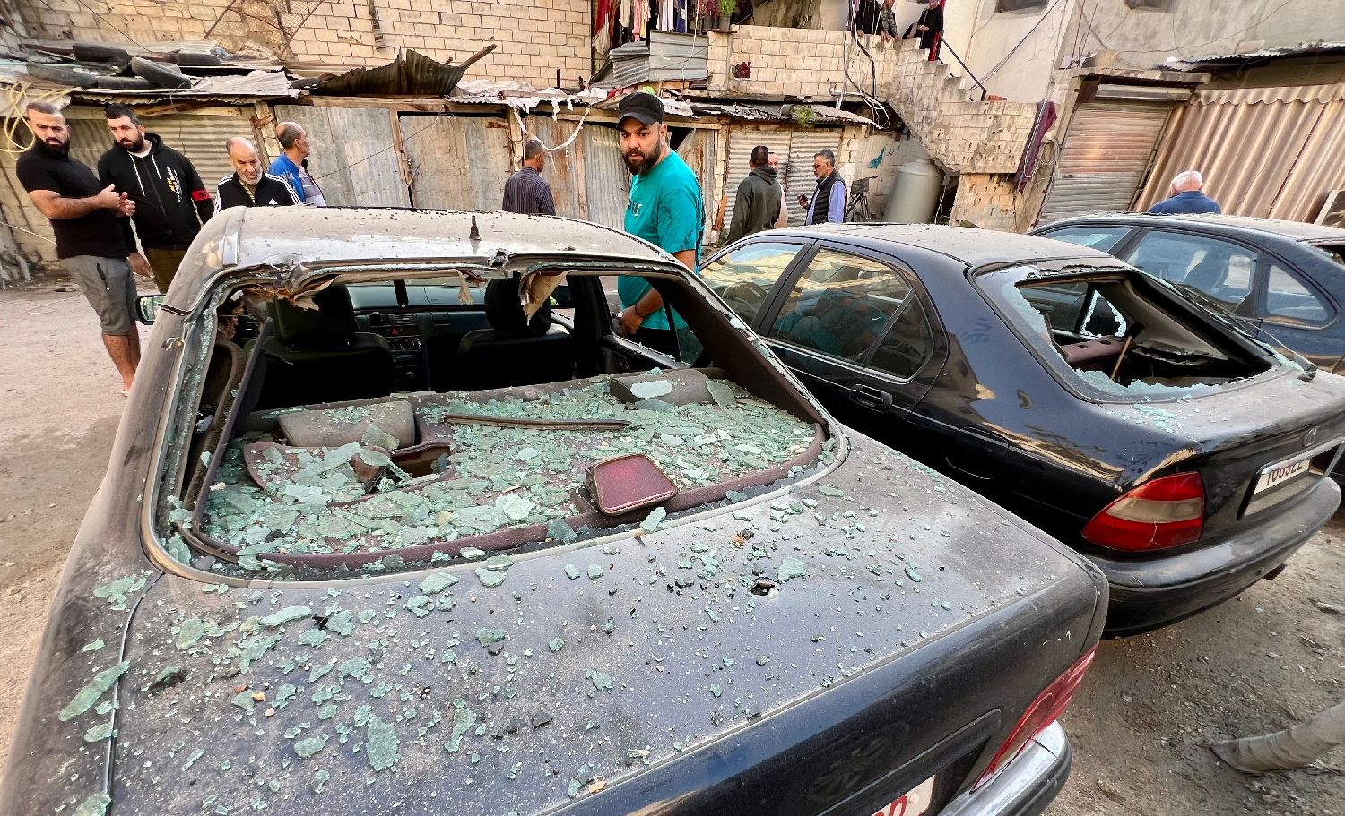 11月19日,人们在黎巴嫩西南部沿海城市赛达附近查看遇袭的巴勒斯坦难民营。