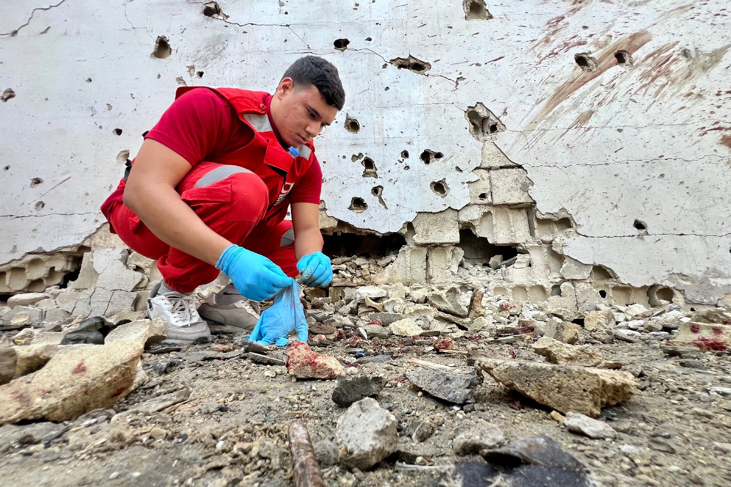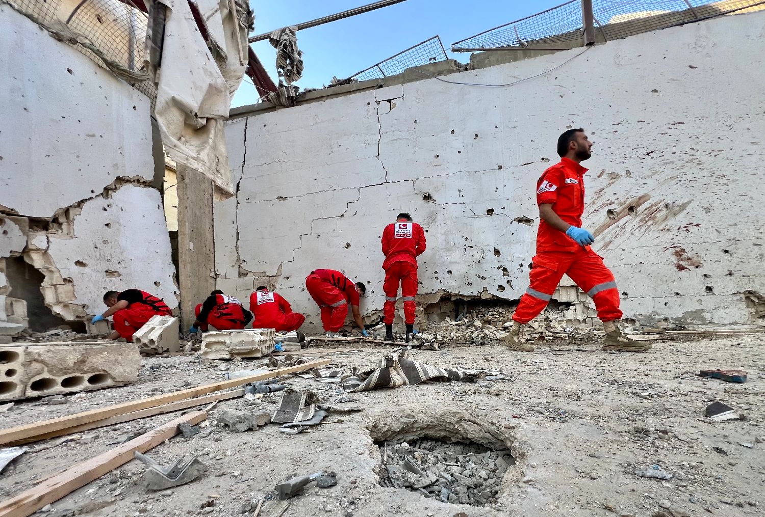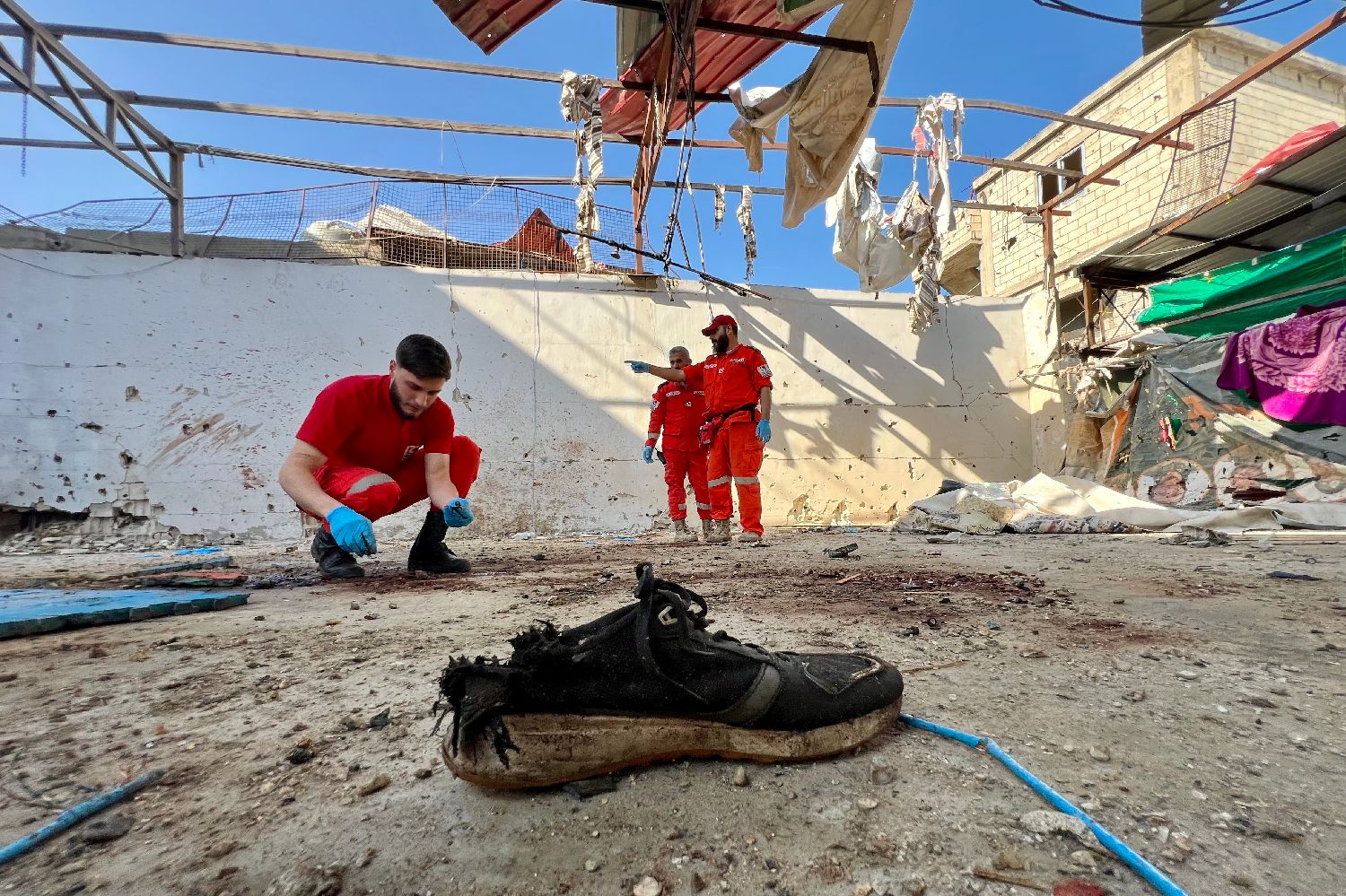 11月19日,救援人员在黎巴嫩西南部沿海城市赛达附近的遇袭巴勒斯坦难民营工作。