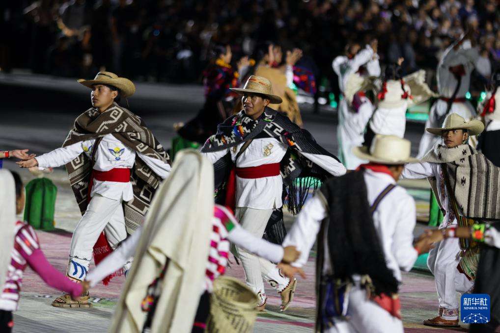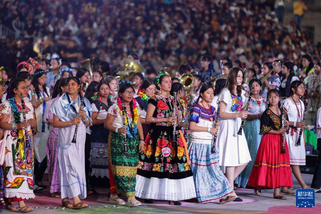 11月22日,在墨西哥首都墨西哥城宪法广场,儿童和青少年参加语言文化节活动。(图片来源:本文图片均据新华社)