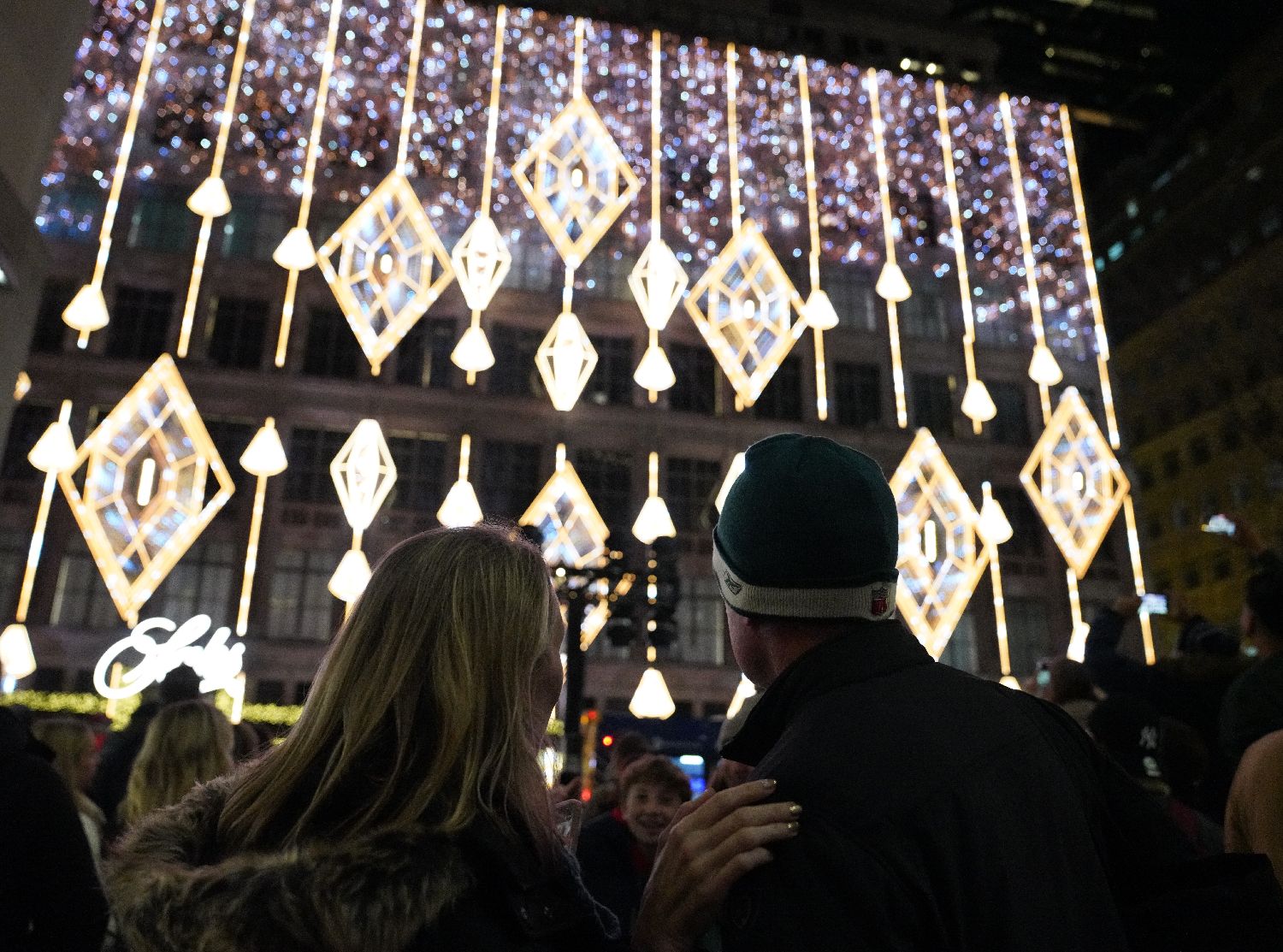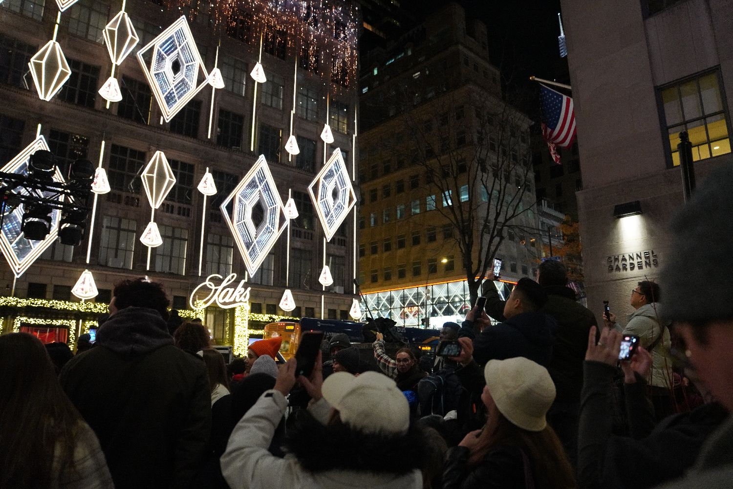 11月24日晚,美国纽约第五大道节日灯光秀拉开帷幕,吸引众多游人驻足观看。