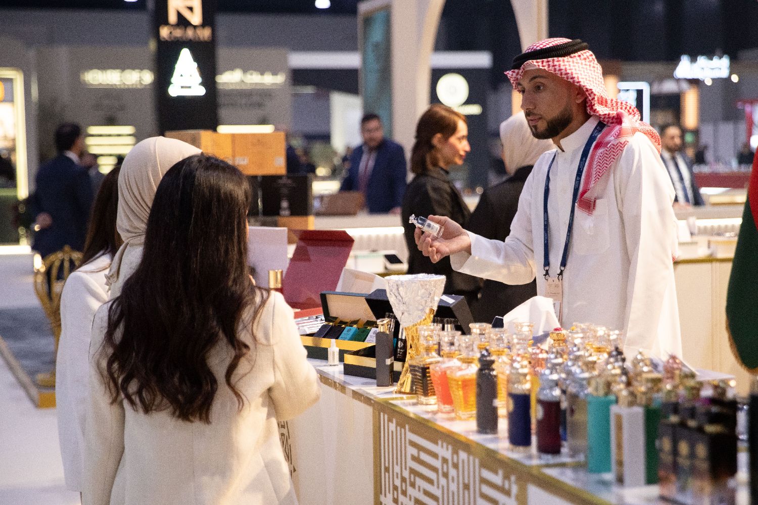 11月25日,在位于巴林首都麦纳麦的巴林世界展览中心,参展商在香水展上推介香水。(图片来源:本文图片均据新华社)