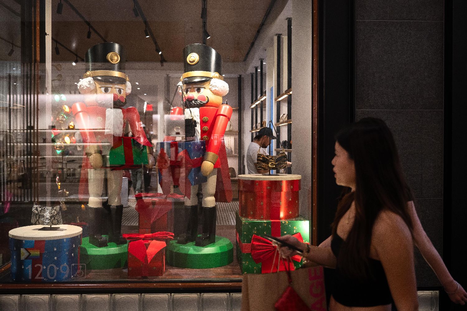 11月28日,在奥地利首都维也纳,顾客走出一家商店。
