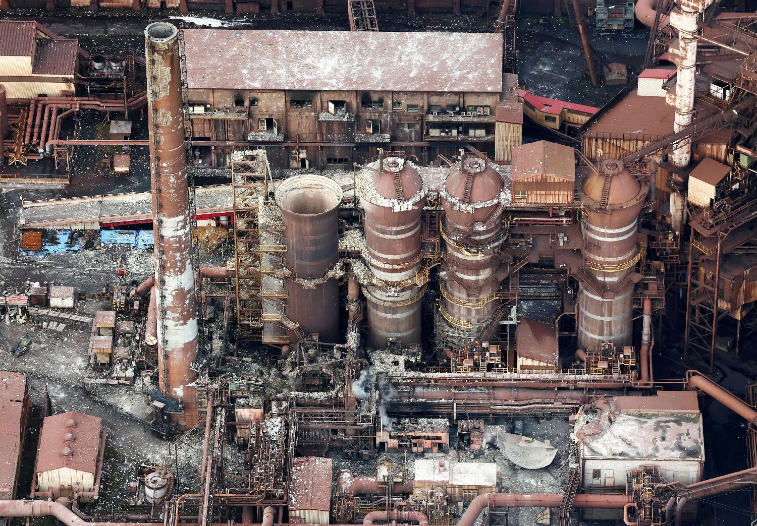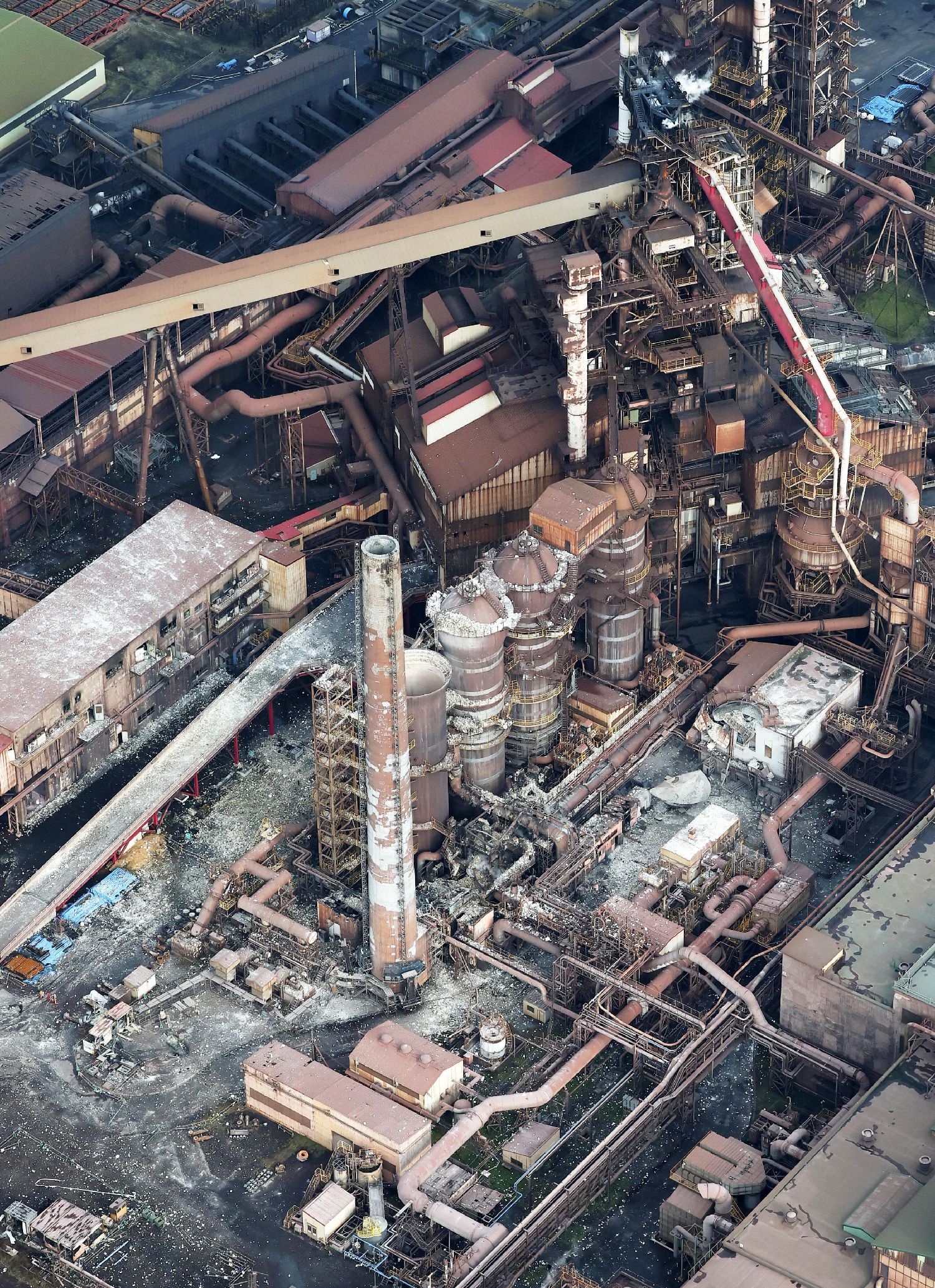12月1日在日本北海道室兰市航拍的室兰市日本制铁公司北日本制铁所工厂火灾后景象。(图片来源:新华社)
