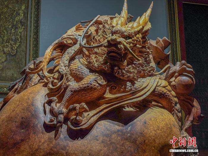 图为馆内展示的木雕艺术作品局部。