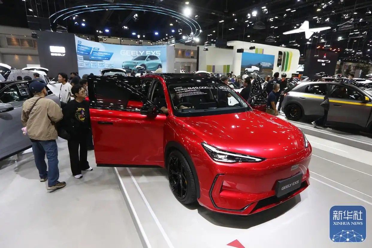 这是12月2日在泰国首都曼谷举行的泰国国际车展上拍摄的吉利展台。(图片来源:本文图片均据新华社)
