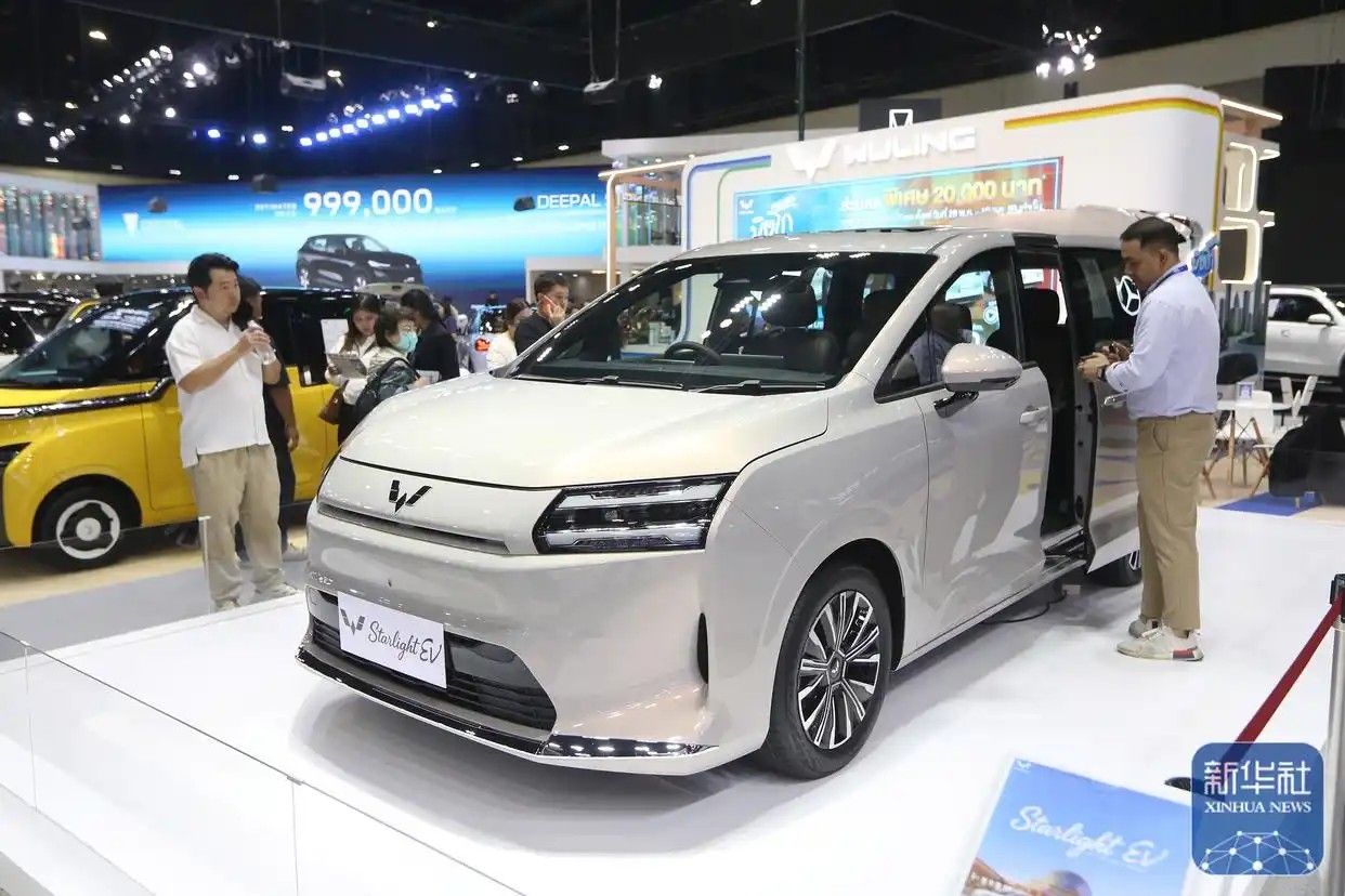 这是12月2日在泰国首都曼谷举行的泰国国际车展上拍摄的五菱星光电动车。