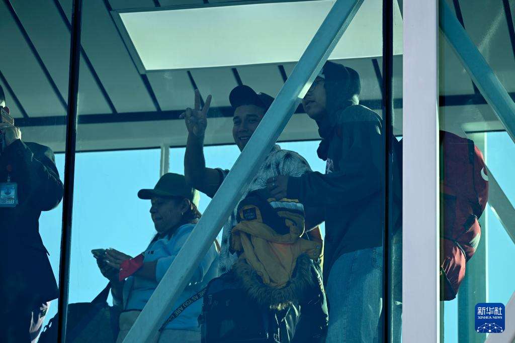 12月3日,在委内瑞拉首都加拉加斯附近的迈克蒂亚西蒙·玻利瓦尔国际机场,移民走下一架从墨西哥起飞的遣返移民航班。(图片来源:本文图片均据新华社)