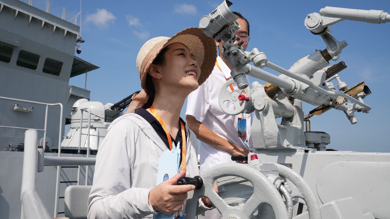 12月1日,在马来西亚巴生港,人们参加中国海军989编队组织的舰艇开放活动。