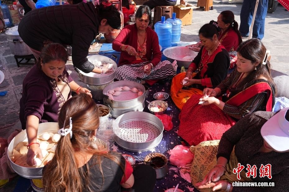 图为尼泊尔妇女围坐制作尤麻瑞。(图片来源:本文图片均据中新网)