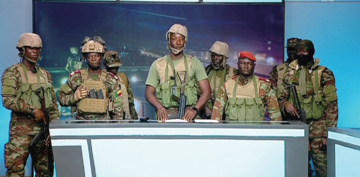 西非国家贝宁12月7日发生未遂政变,一群军人在贝宁国家电视台宣布推翻总统塔隆(Patrice Talon),帕斯卡(Tigri Pascal)上校领导的“重建军事委员会”(CMR)已接管政权。但贝宁政府宣布挫败了政变企图。军方及安全部门消息称,约十余名士兵被捕,包括此次未遂政变的幕后策划者。图为当天政变军人在贝宁电视台宣布“夺权”的视频画面。法新社图