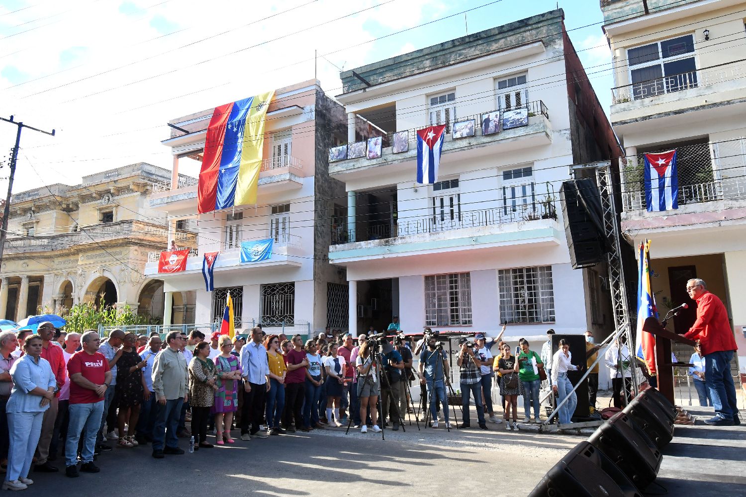 12月6日,古巴各界民众近千人在首都哈瓦那举行集会,谴责美国针对委内瑞拉的军事威胁与制裁封锁,并重申对委内瑞拉政府的支持。