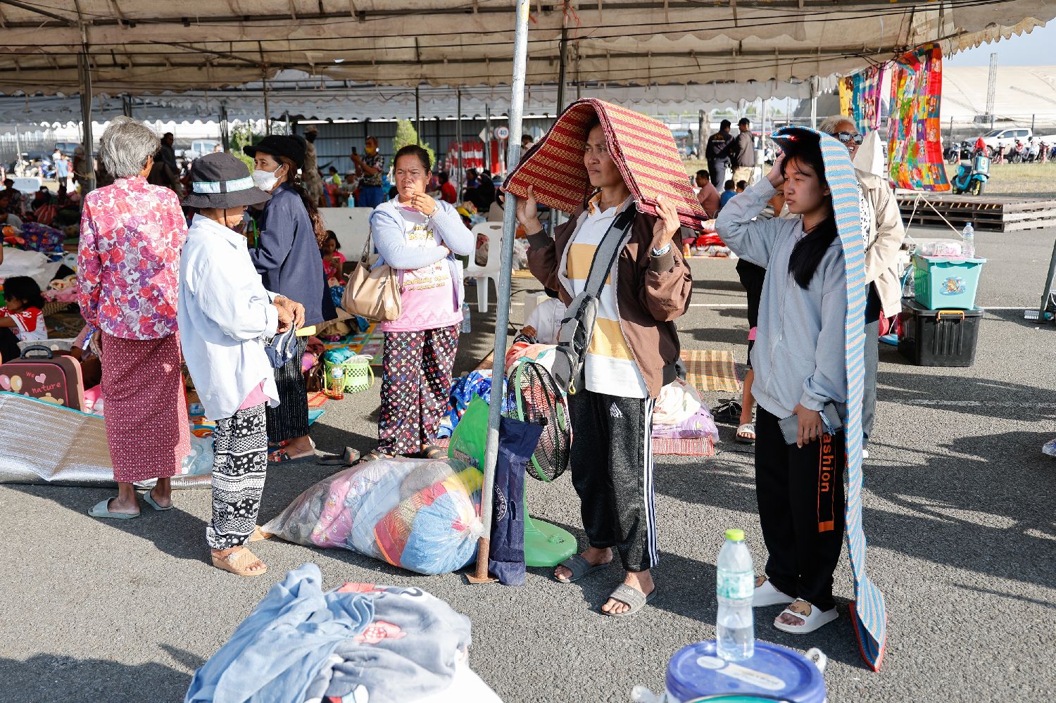12月8日,在泰国武里南府,撤离边境省份的民众来到一处避难所。
