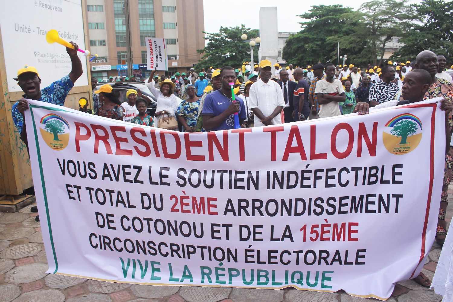 12月8日,在贝宁经济首都科托努的保加利亚广场,民众参加集会声援总统塔隆。