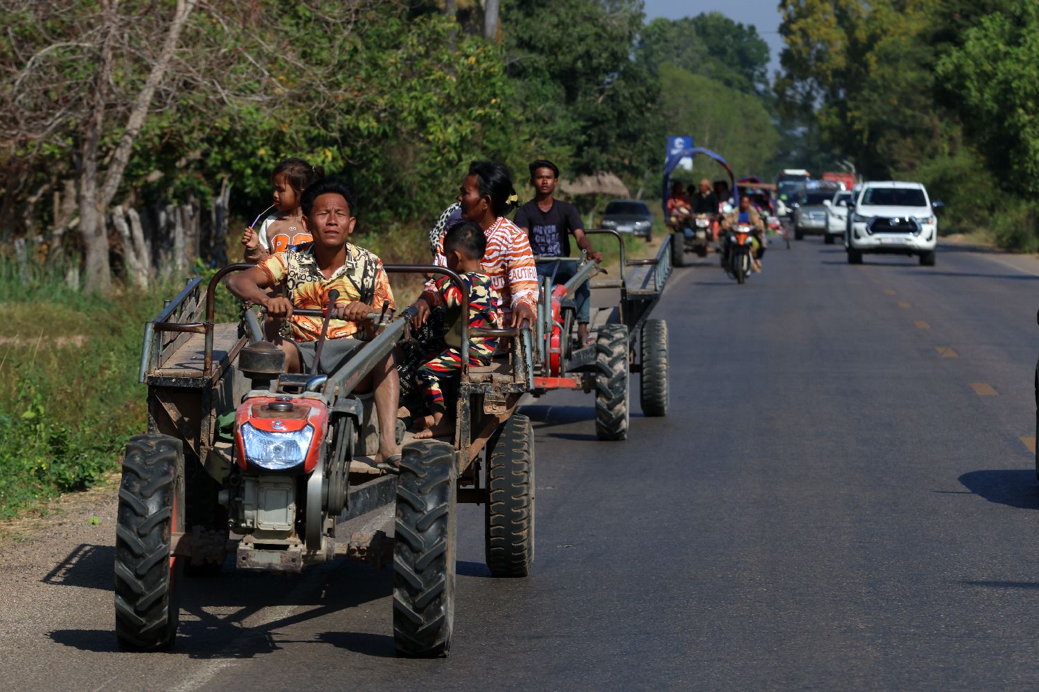 12月9日在柬埔寨暹粒省拍摄的逃离边境的居民。
