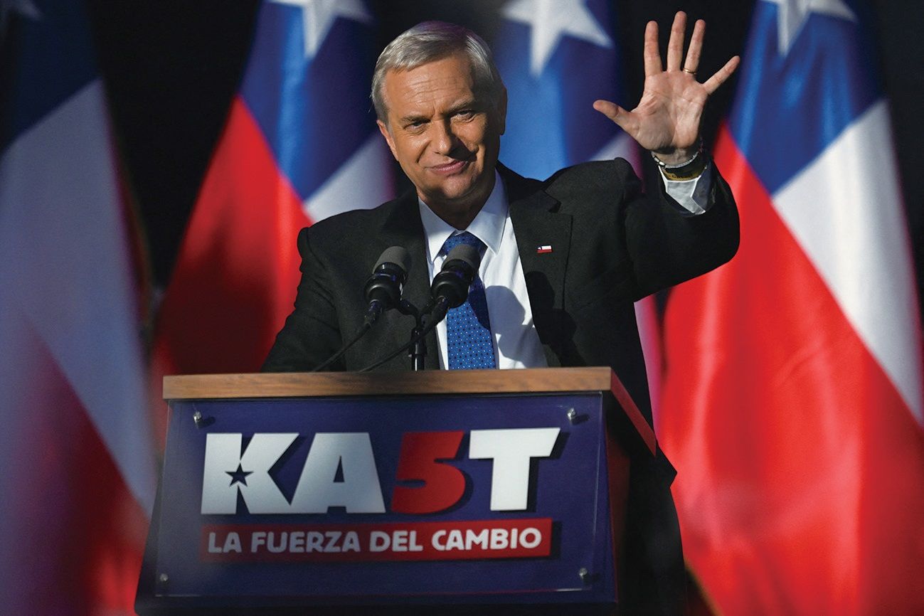 12月14日智利举行总统选举第二轮投票,左翼联盟代表珍妮特·哈拉与极右翼的共和党候选人何塞·安东尼奥·卡斯特展开角逐。后者在选前民调中大幅领先,胜券在握,这将是继独裁者皮诺切特之后智利再度出现极右派领导人。图为卡斯特于11日的竞选闭幕集会上向支持者挥手致意。法新社图