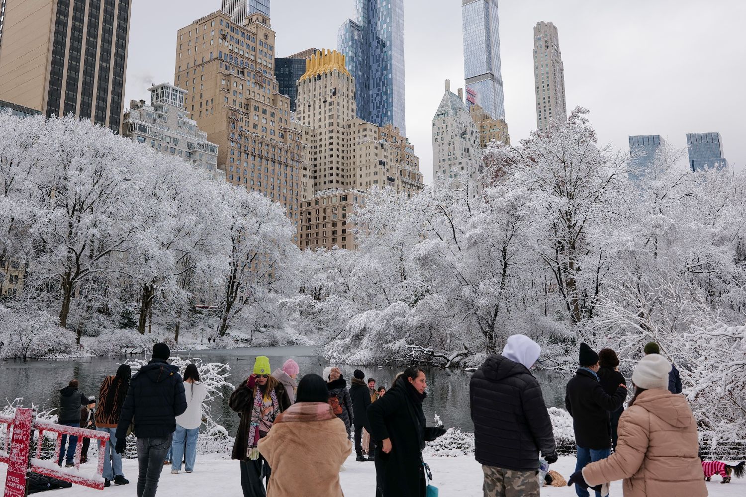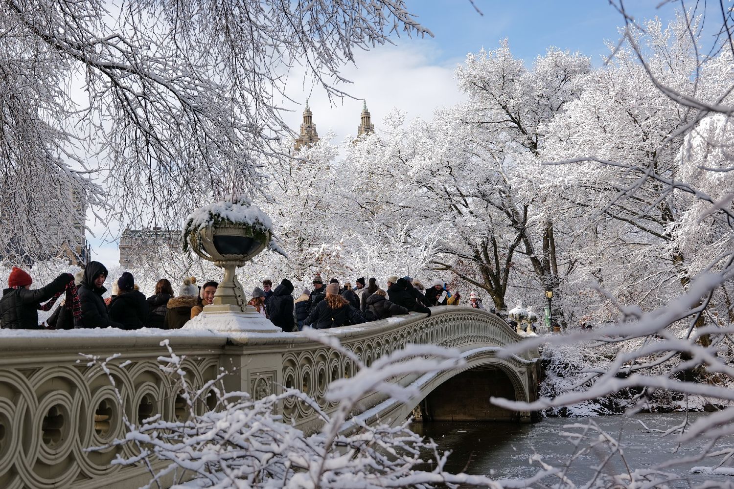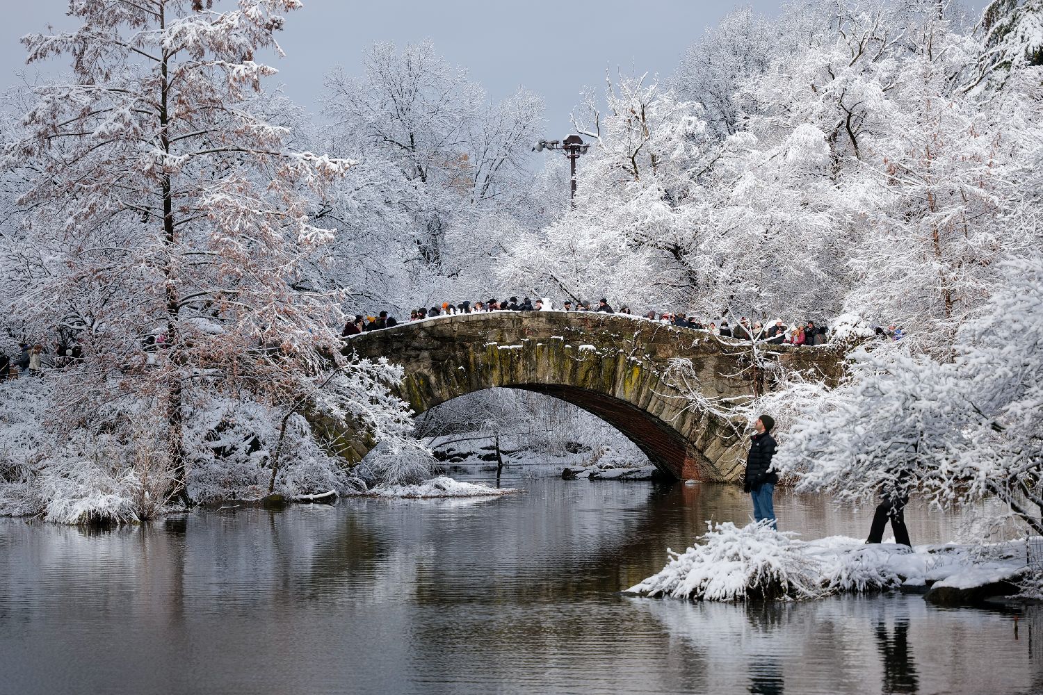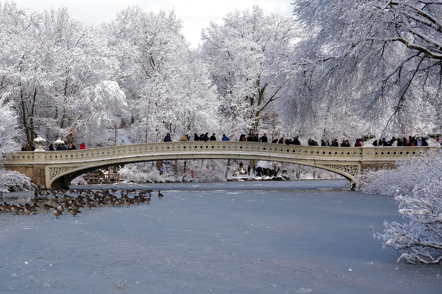 当地时间12月14日,美国纽约中央公园雪后美景。