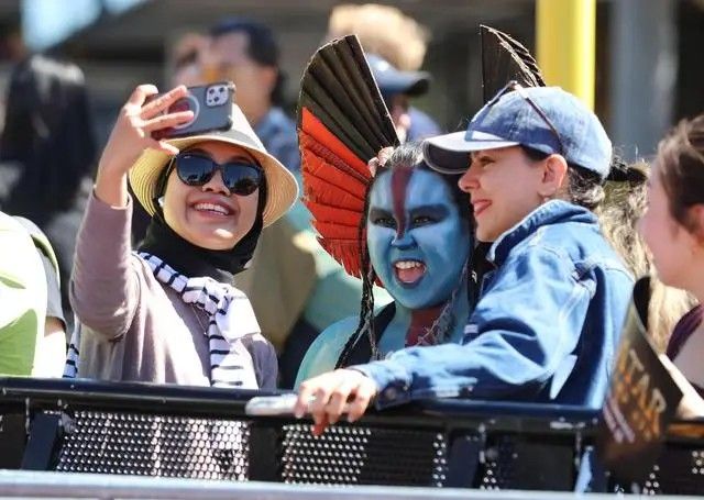12月13日,影迷在惠灵顿举行的《阿凡达3》新西兰首映礼现场合影。(图片来源:本文图片均据新华社)