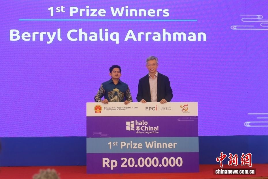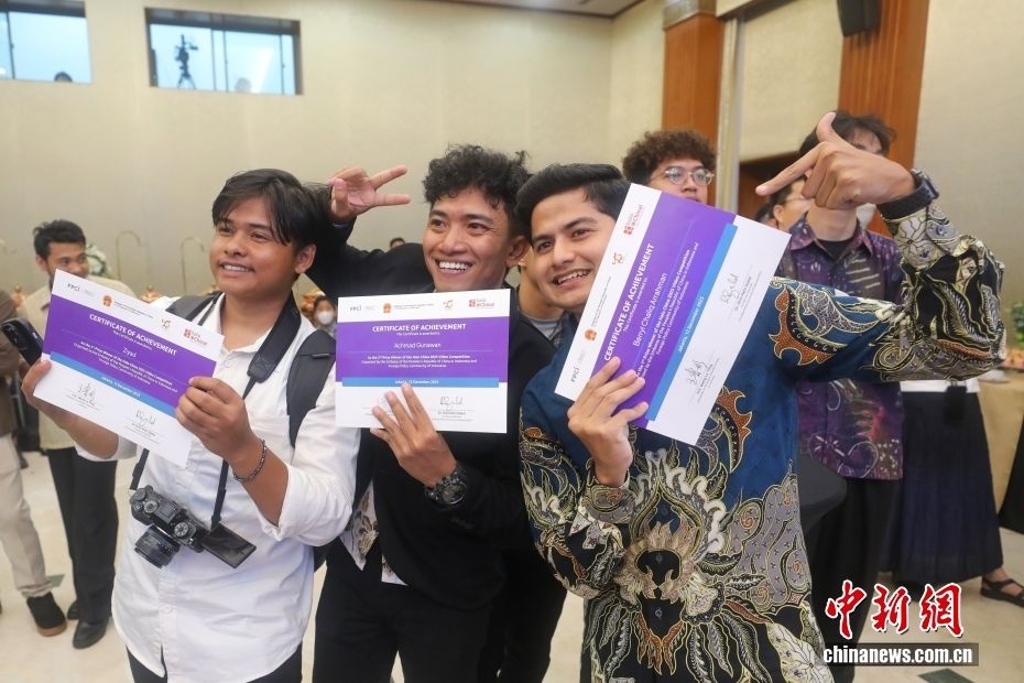 当地时间12月12日,中国驻印尼使馆举办第六届“你好,中国!”短视频大赛颁奖仪式。中国驻印尼大使王鲁彤、印尼外交政策协会创始人迪诺、印尼各界代表及获奖者等出席。