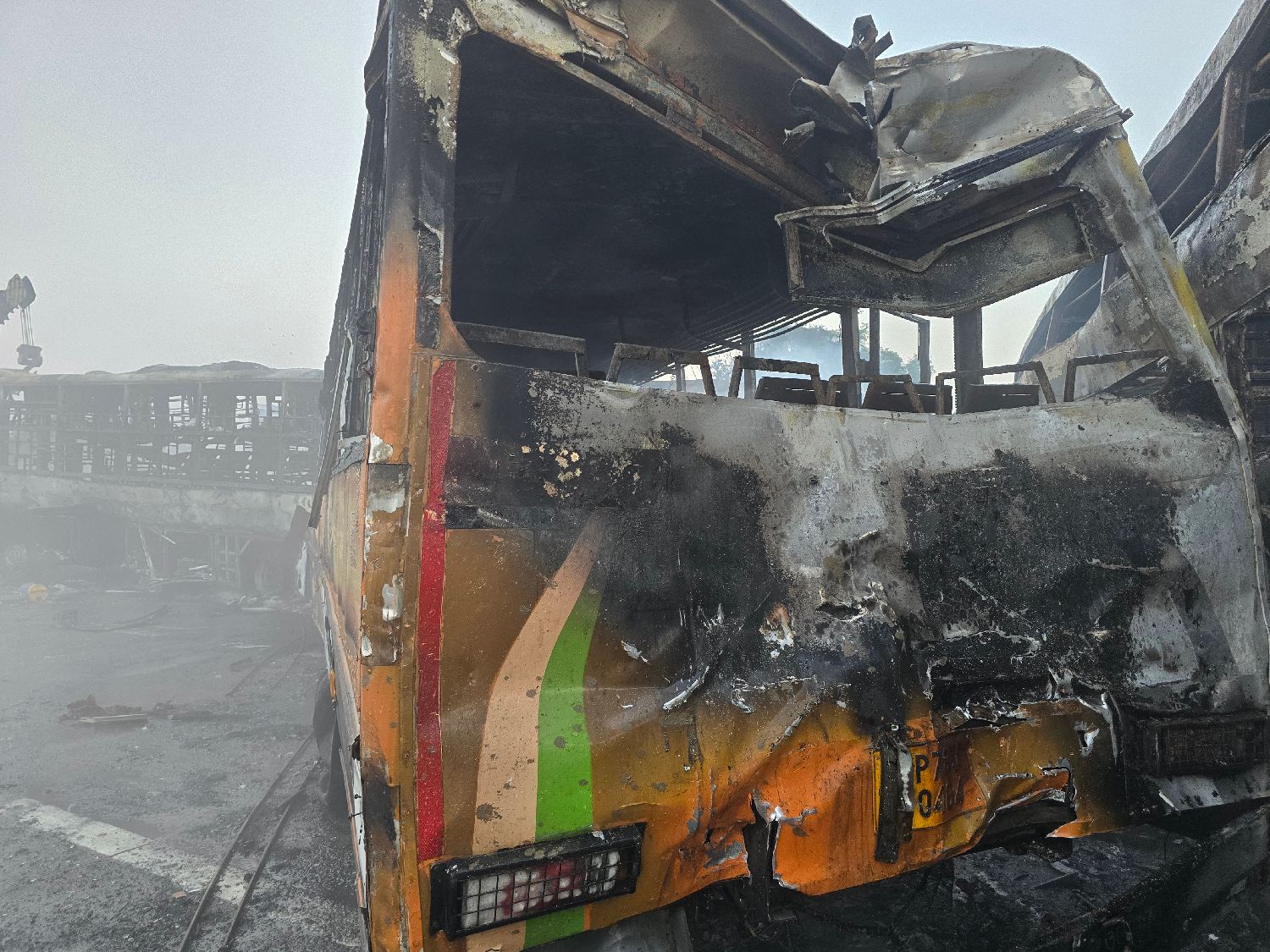 12月16日在印度北方邦的马图拉事故现场拍摄的车辆残骸。