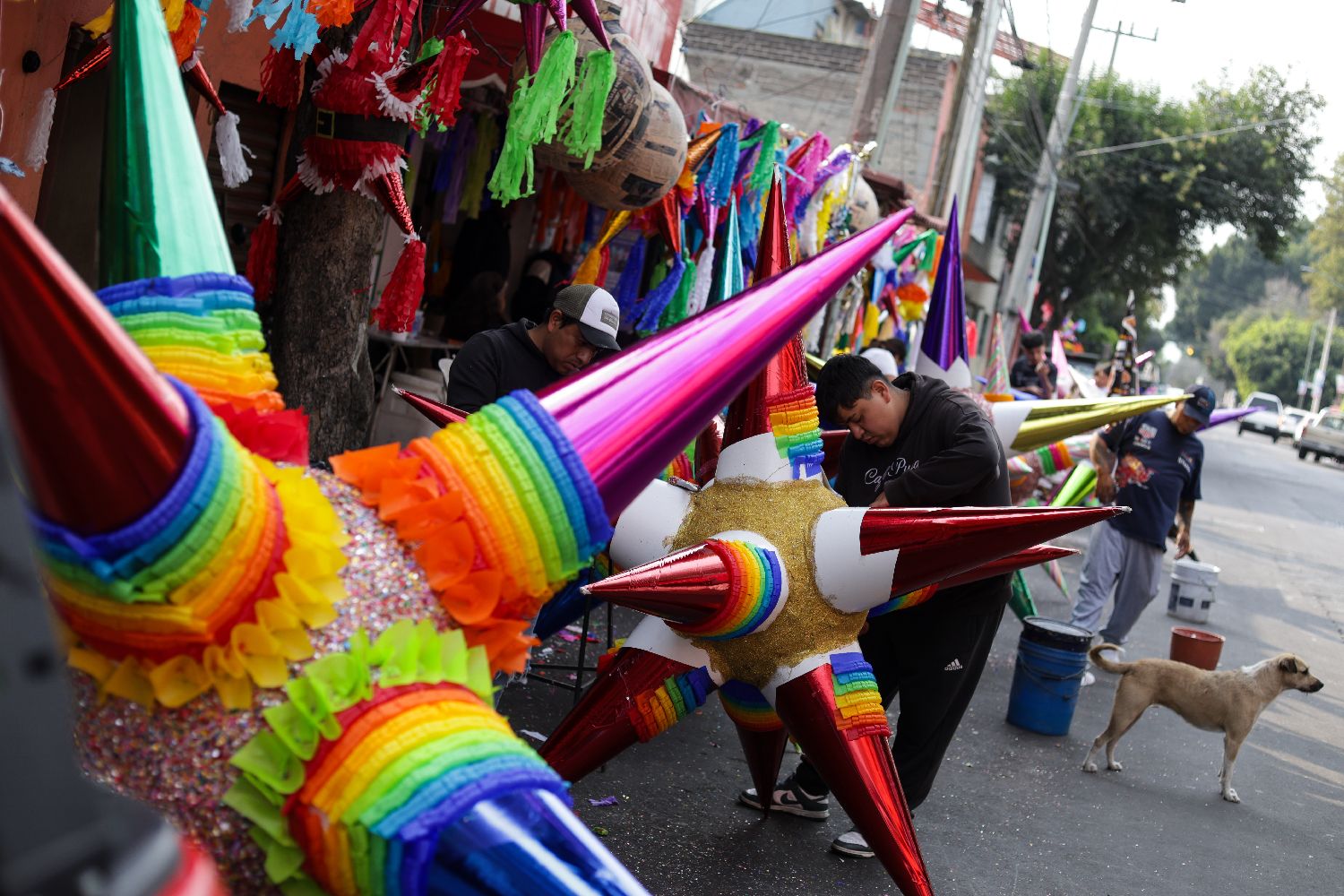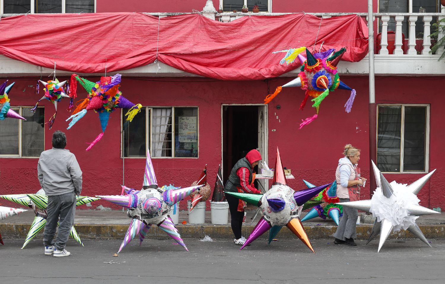 12月16日,在墨西哥首都墨西哥城,手工艺人制作“皮纳塔”。
