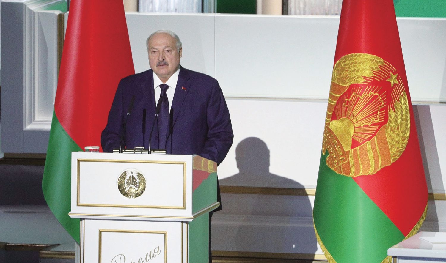 图为卢卡申科在首都明斯克发表国情咨文。新华社图