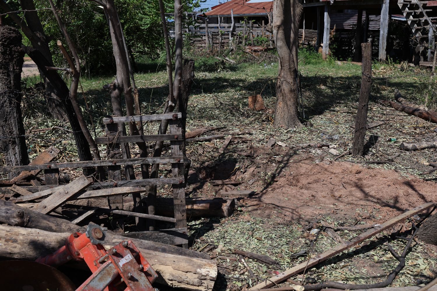 12月29日在泰国沙缴府临近柬埔寨的边境地区拍摄的一处民居旁的弹坑。