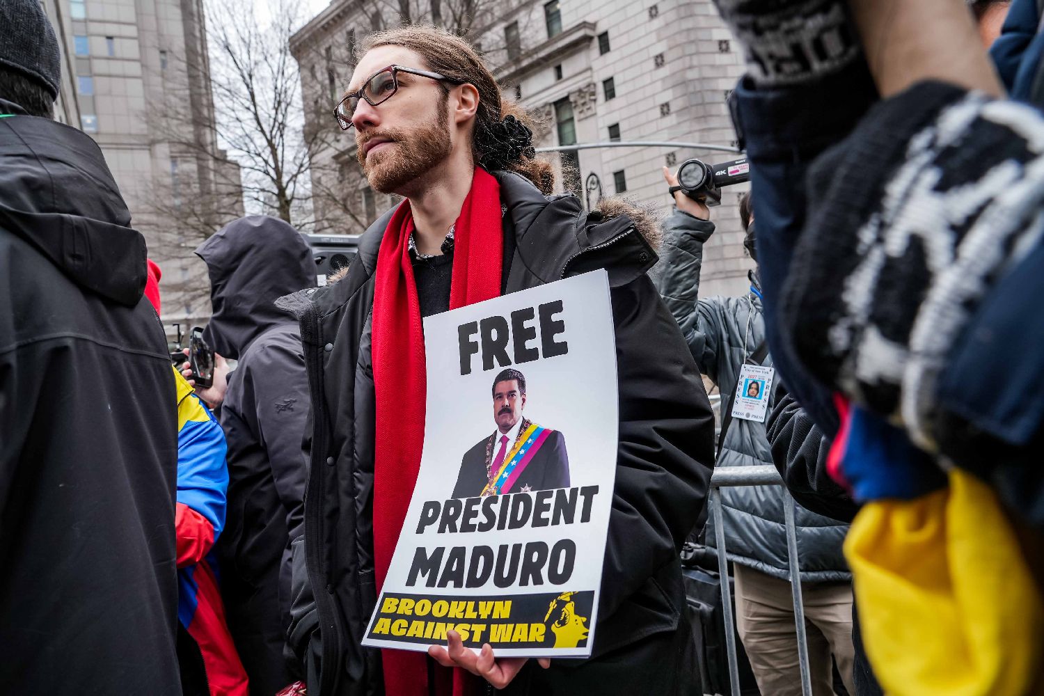 1月5日,抗议者聚集在美国纽约南区联邦地区法院外要求释放马杜罗。