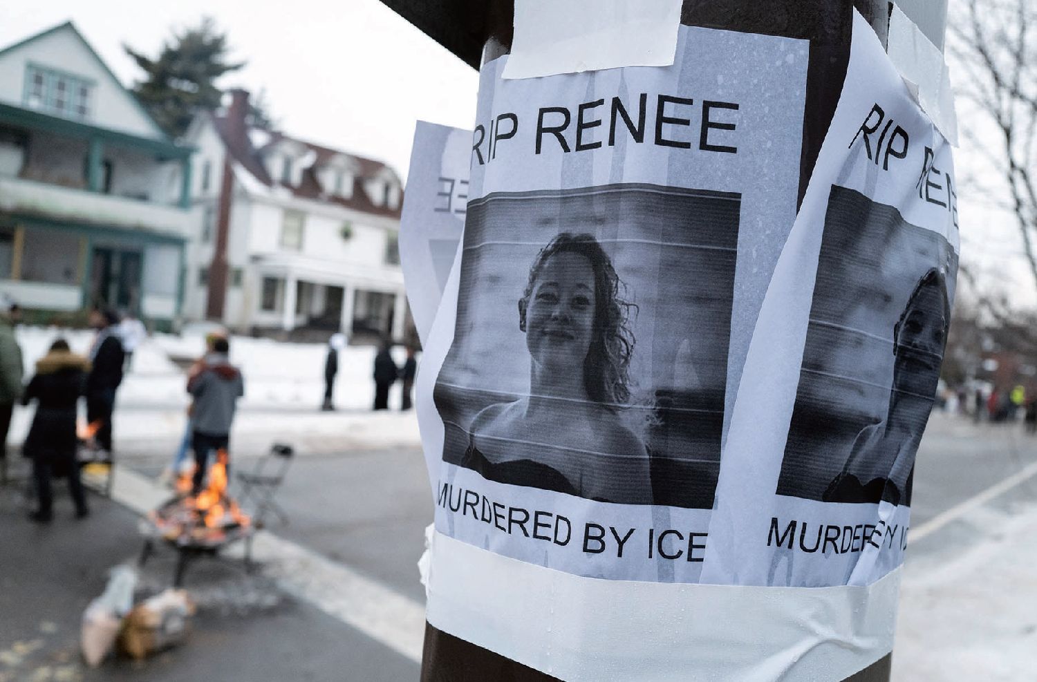 国土安全部声称,一名暴徒以车辆当作武器,试图撞击执法人员,是“本土恐怖主义行为”,总统特朗普也声称开枪者是出于自我防卫,但明尼阿波利斯市长佛雷(Jacob Frey)怒斥这种说法是“狗屁”,并要求ICE执法人员离开明尼苏达州。现场视频也显示,受害者并未驾车冲撞。图为民众在事发地张贴死者古德(Renee Nicole Good)的照片。法新社图