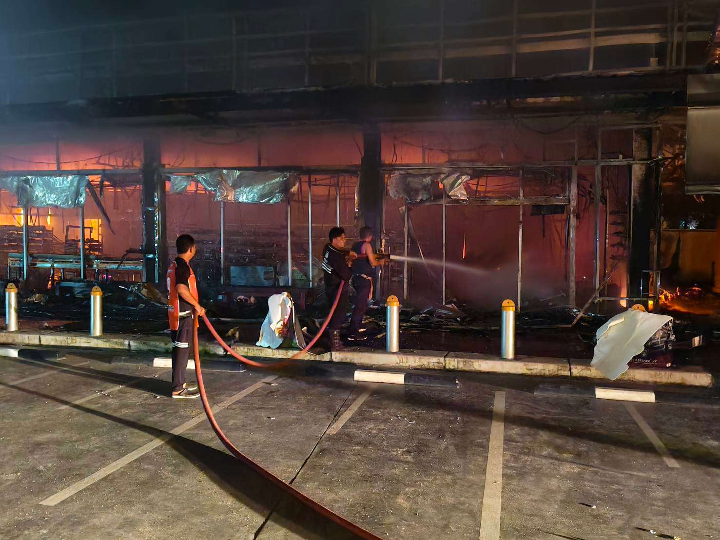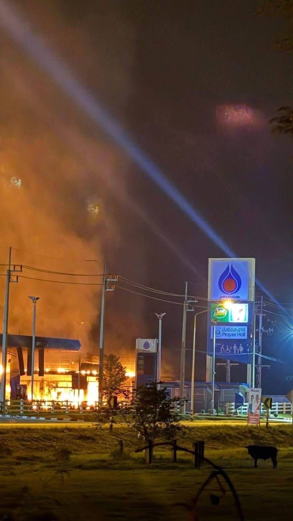 这张泰国陆军1月11日发布的照片显示,救援人员在泰国那拉提瓦府一处遭蓄意纵火的加油站灭火。