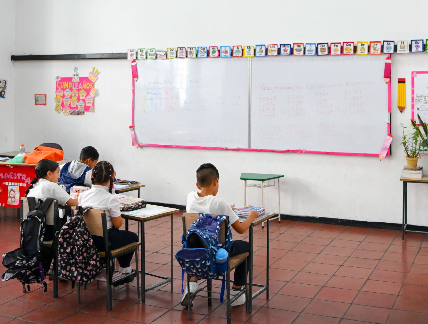 1月12日,在委内瑞拉首都加拉加斯一所公立学校,几名学生在教室学习。(图片来源:本文图片均来自新华社)