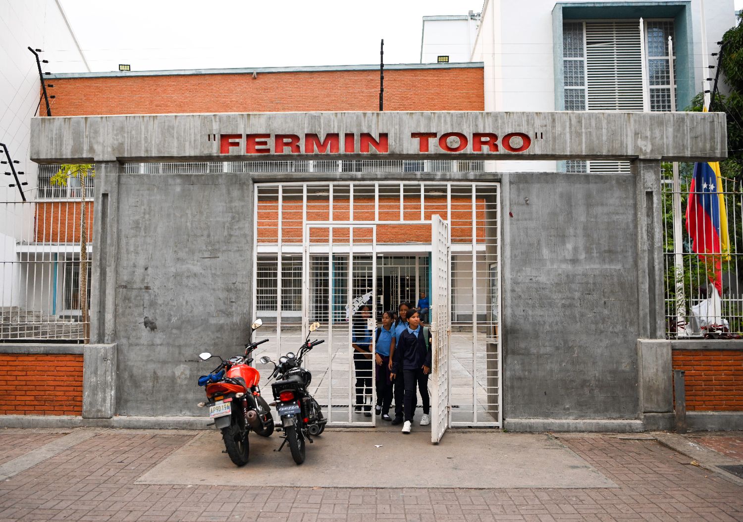 1月12日,在委内瑞拉首都加拉加斯一所公立学校,学生放学后走出校门。