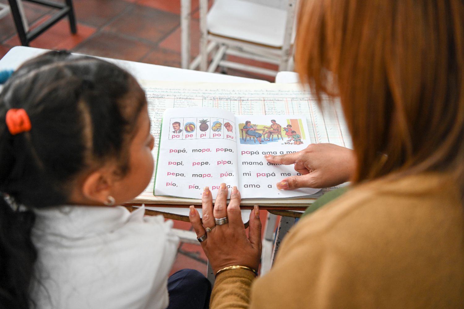 1月12日,在委内瑞拉首都加拉加斯一所公立学校,老师教学生读课文。