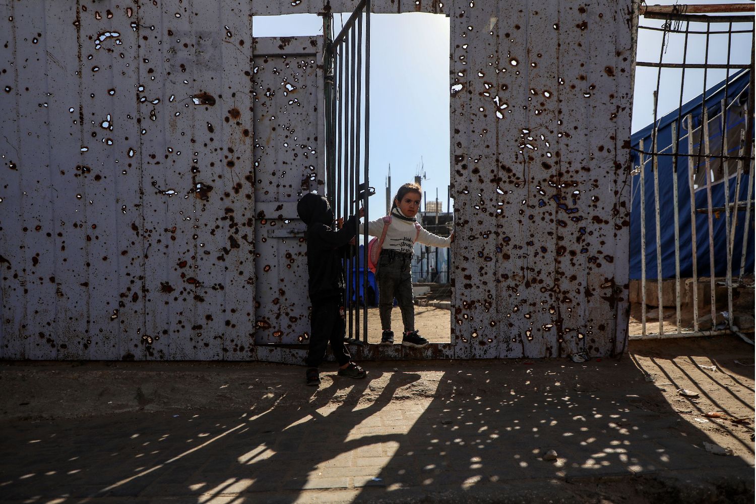 1月12日,孩子们在加沙地带北部杰巴利耶难民营的一所临时学校内活动。