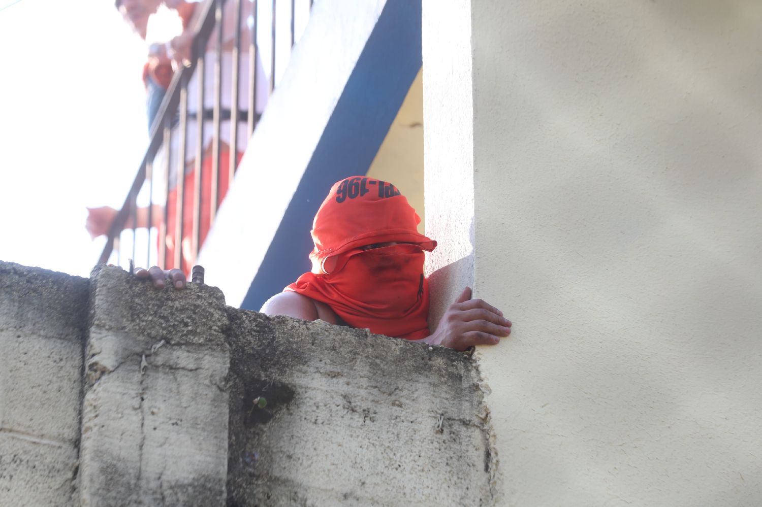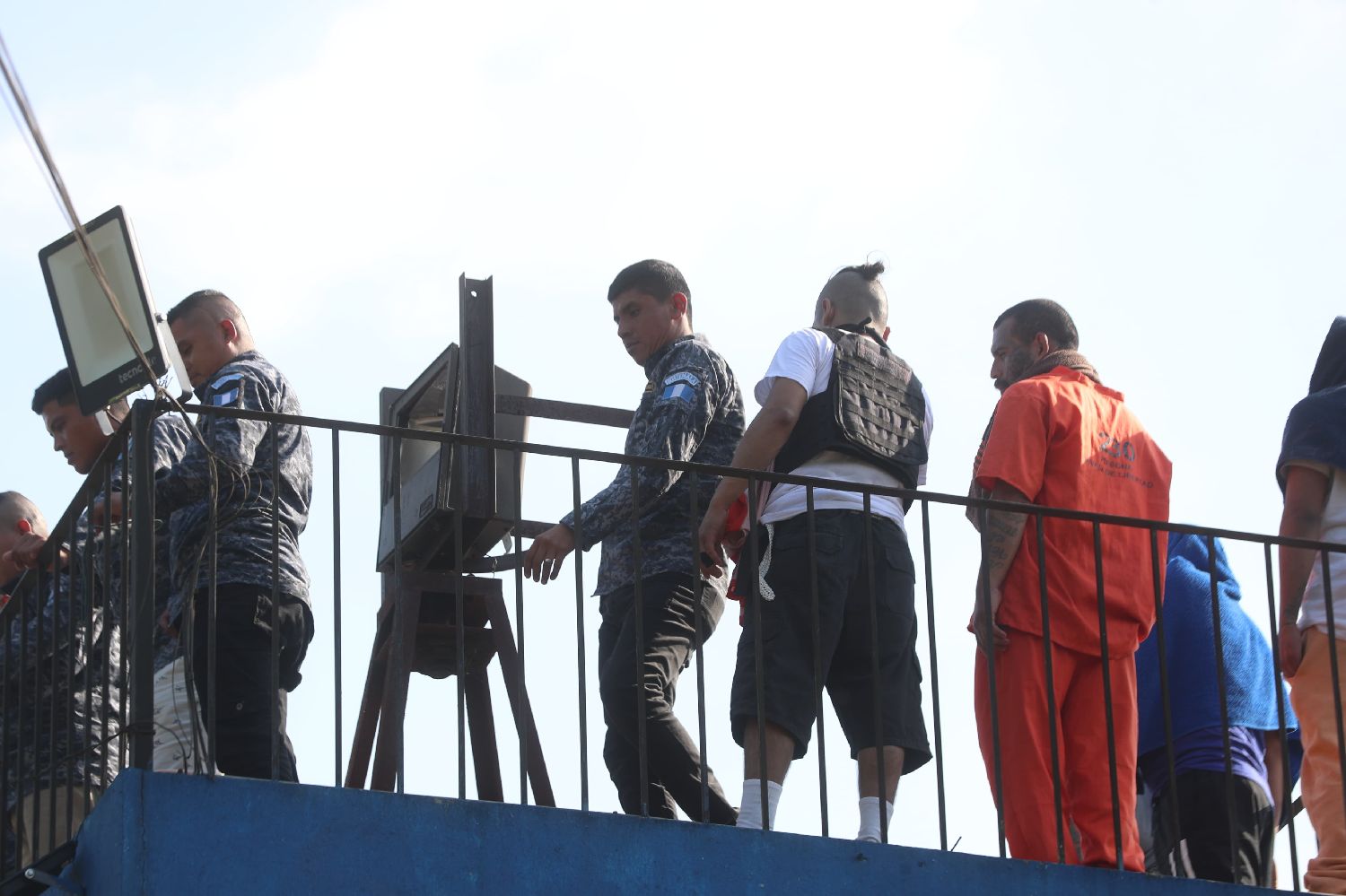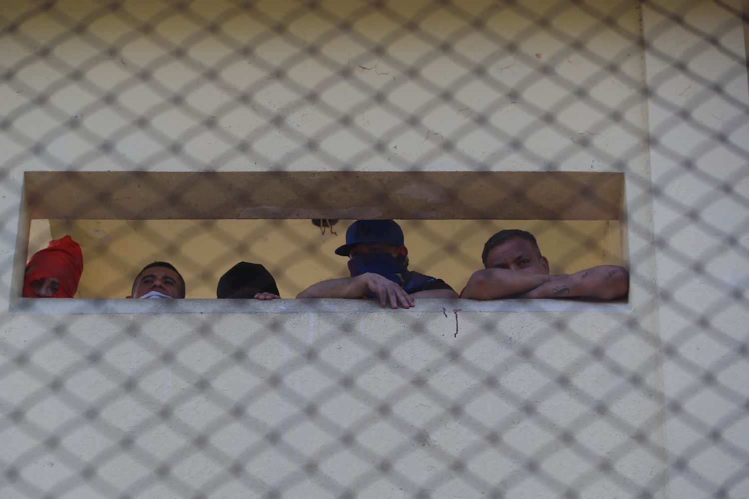 1月17日,囚犯在危地马拉弗赖哈内斯一所监狱查看骚乱情况。