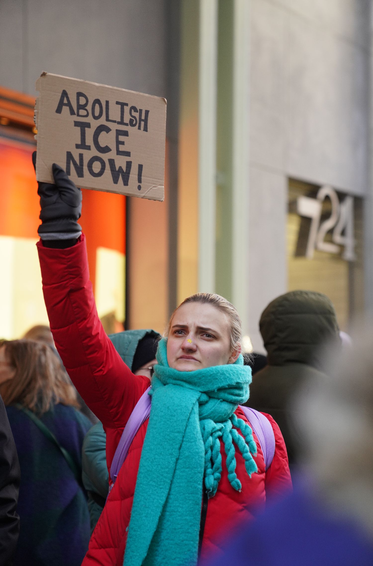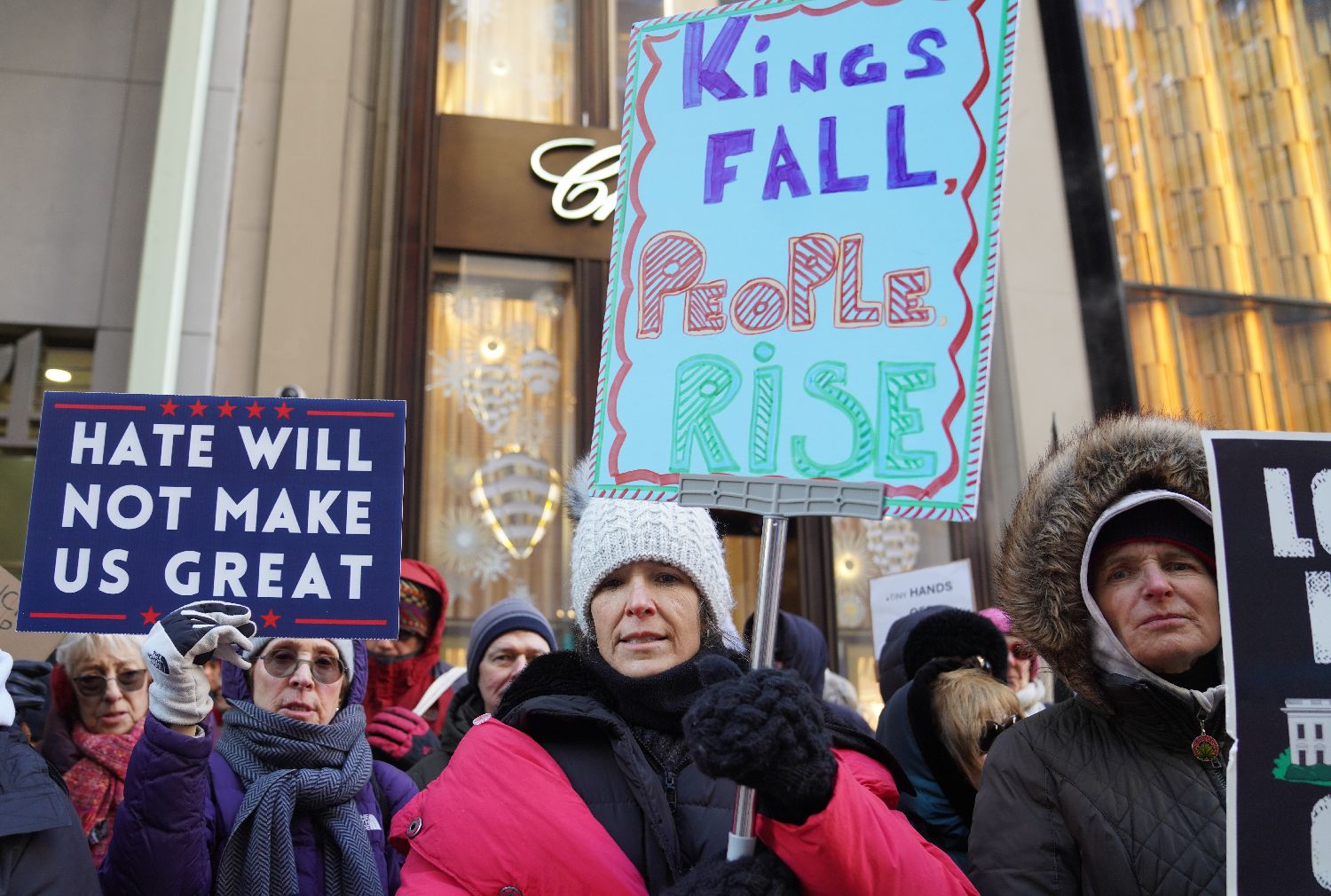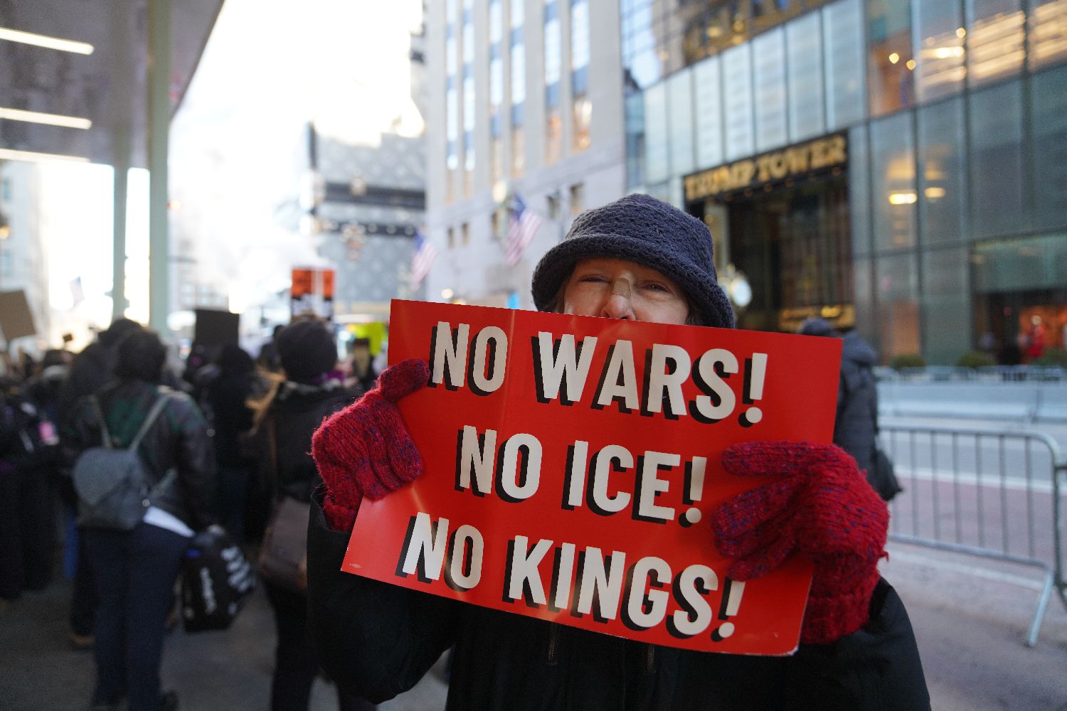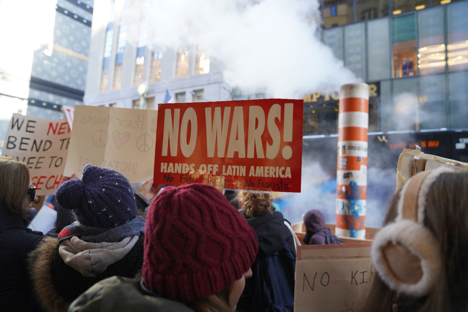 1月20日,纽约民众在多个地点举行集会,抗议美国抓捕非法移民、武力干涉等政策。